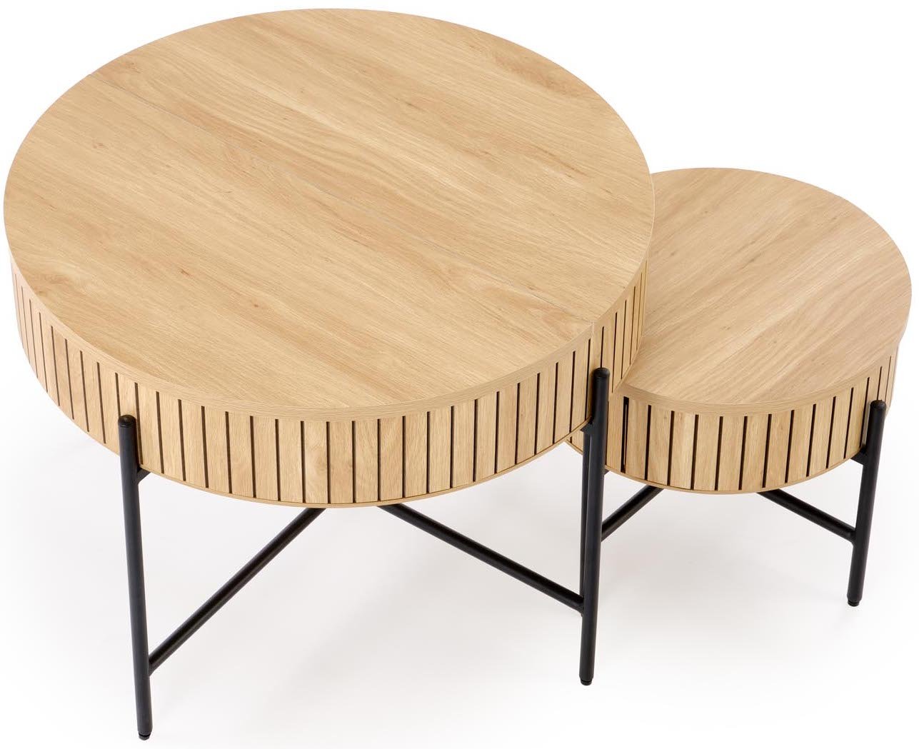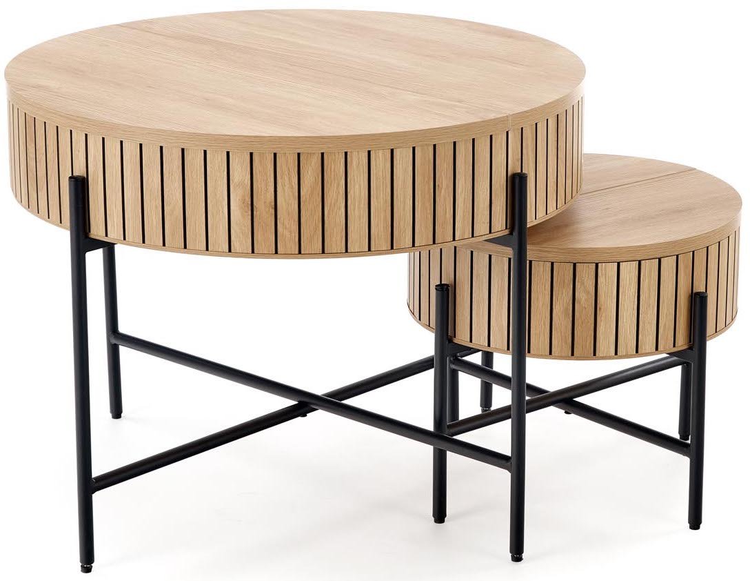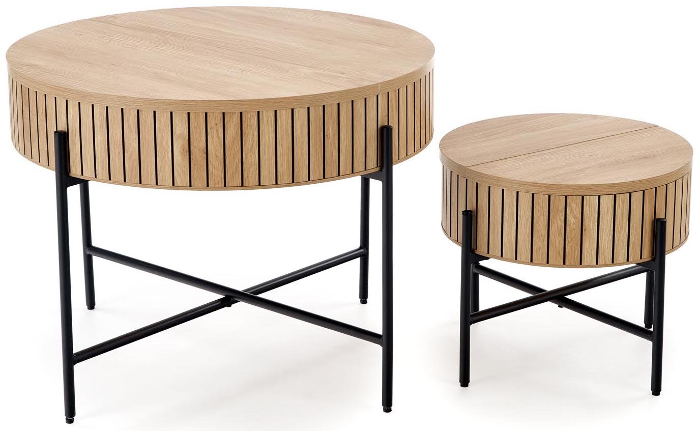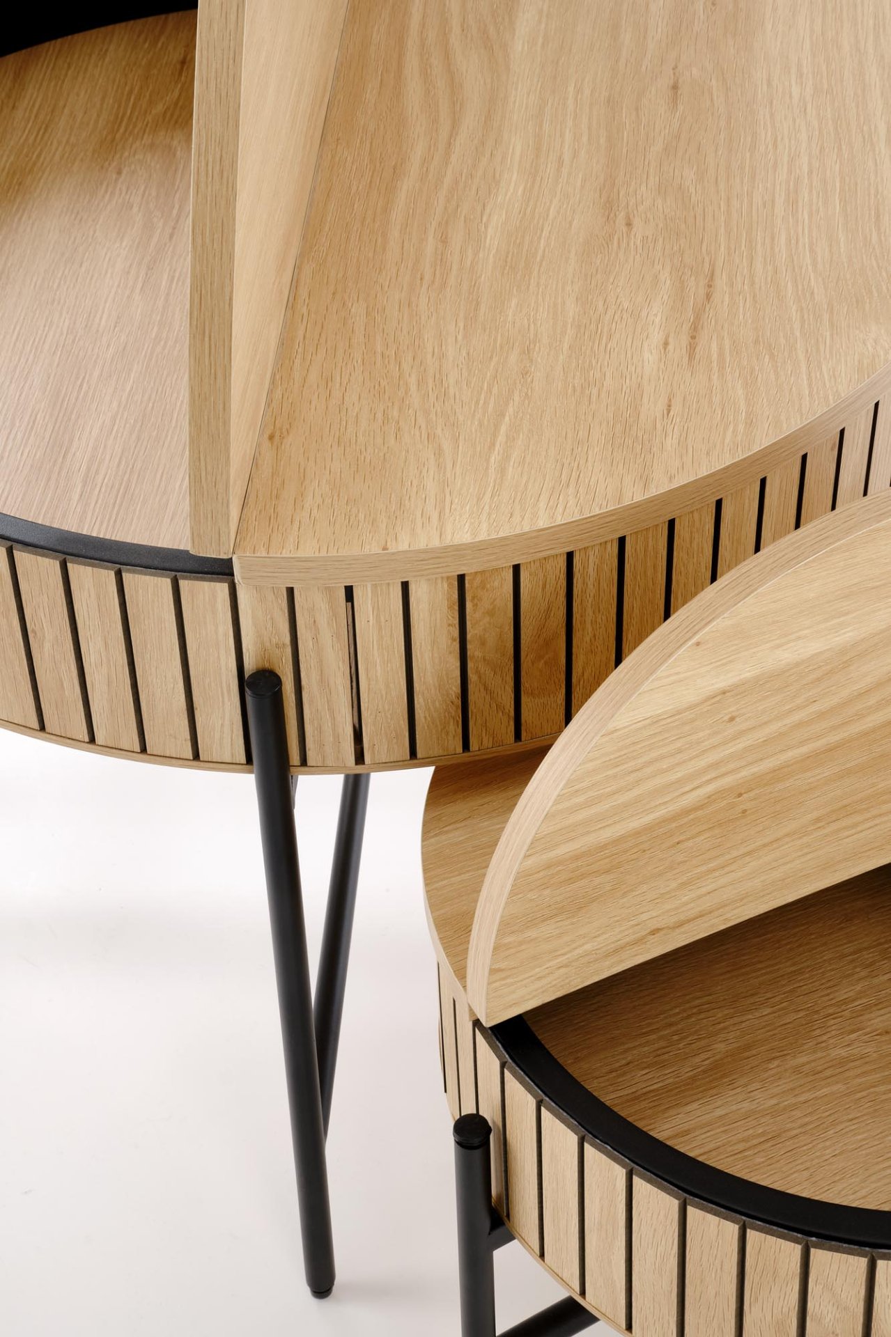 Unesite dozu elegancije i funkcionalnosti u svoj dom uz set od dva stolića za dnevni boravak Dante – savršenu kombinaciju modernog dizajna, praktične upotrebljivosti i visokokvalitetnih materijala. Ovaj set pažljivo je osmišljen kako bi se lako uklopio u svaki prostor, bilo da ga smjestite u dnevni boravak, ured ili spavaću sobu. Njegova prirodna i crna kombinacija boja donosi osjećaj sofisticiranosti, dok čiste linije i minimalistički izgled čine da stolići izgledaju elegantno i suvremeno u svakoj prostoriji.