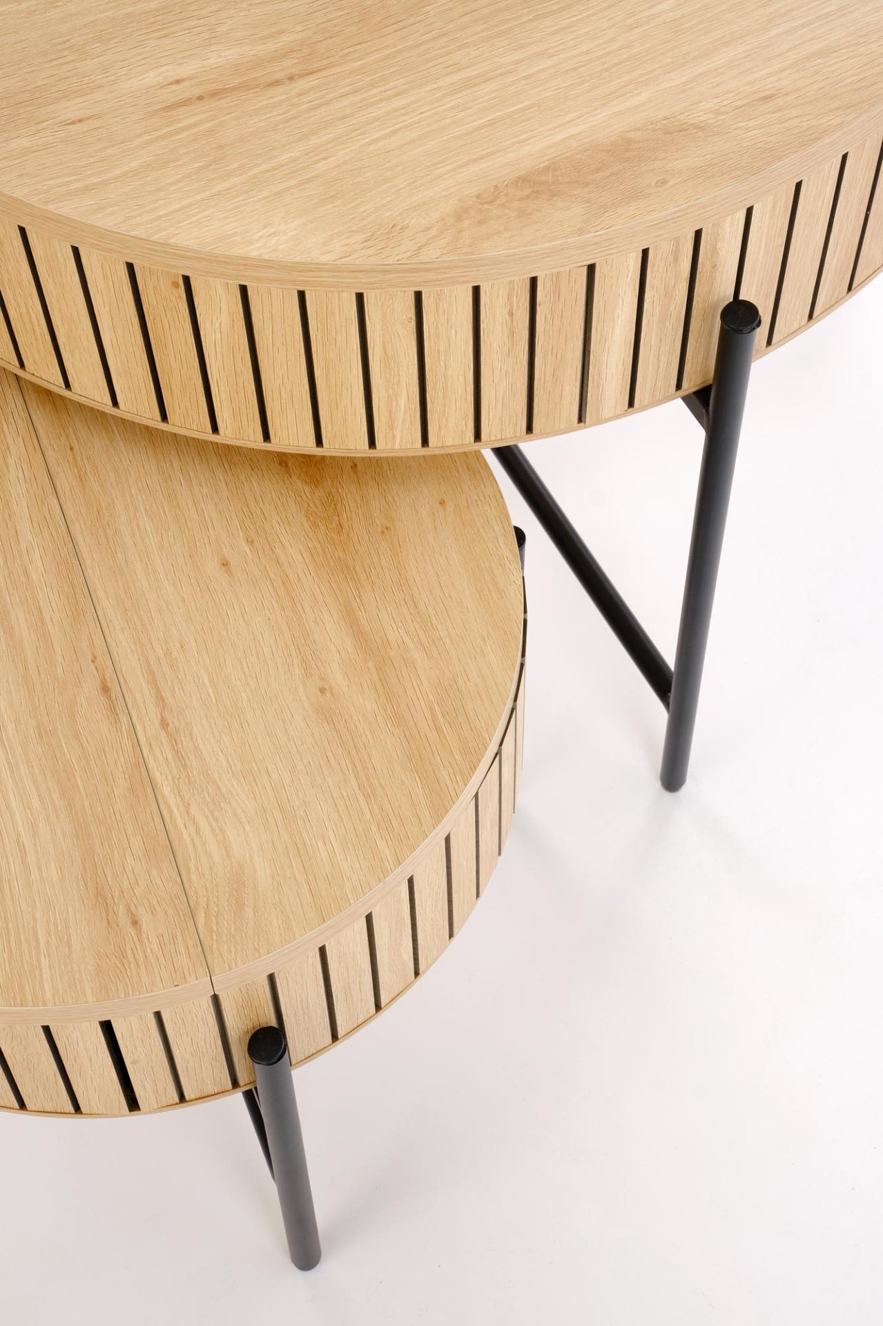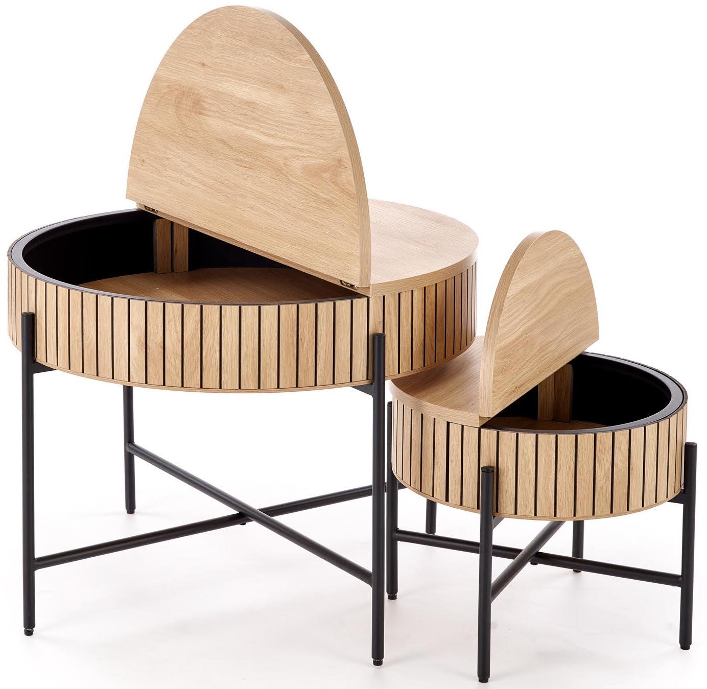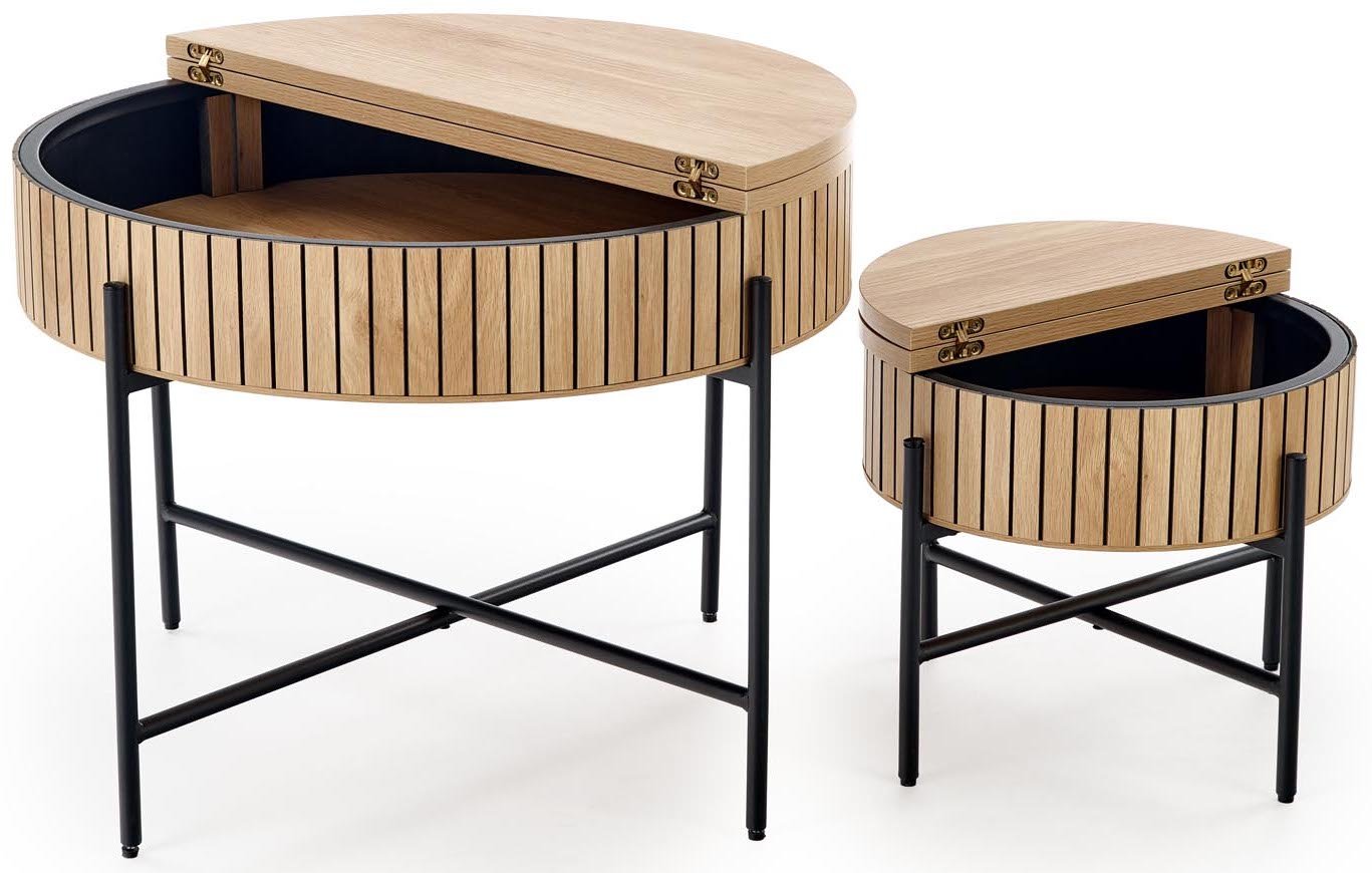 Unesite dozu elegancije i funkcionalnosti u svoj dom uz set od dva stolića za dnevni boravak Dante – savršenu kombinaciju modernog dizajna, praktične upotrebljivosti i visokokvalitetnih materijala. Ovaj set pažljivo je osmišljen kako bi se lako uklopio u svaki prostor, bilo da ga smjestite u dnevni boravak, ured ili spavaću sobu. Njegova prirodna i crna kombinacija boja donosi osjećaj sofisticiranosti, dok čiste linije i minimalistički izgled čine da stolići izgledaju elegantno i suvremeno u svakoj prostoriji.