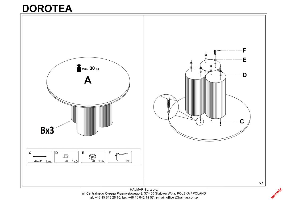 Proizveden u renomiranoj tvornici Halmar, ovaj stolić jamči visoke standarde izrade i dugotrajan vijek trajanja. Laminirani MDF materijal poznat je po svojoj čvrstoći, otpornosti na ogrebotine, vlagu i toplinu, što ga čini idealnim izborom za svakodnevnu upotrebu. S nosivošću do 30 kg, stolić bez problema podnosi sve svakodnevne potrebe – od posluživanja kave do odlaganja knjiga, daljinskih upravljača ili dekorativnih predmeta.
