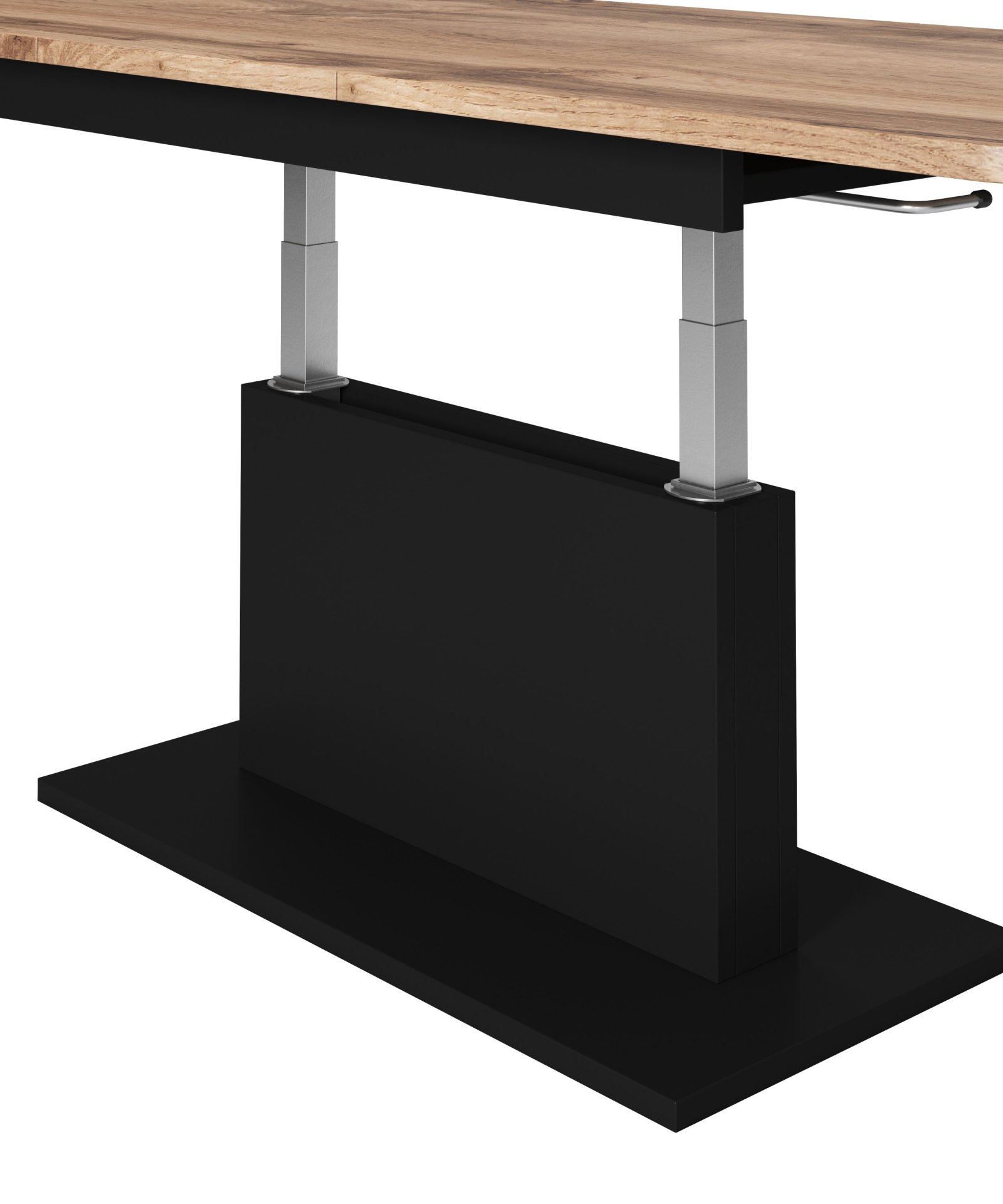 Boja hrast votan donosi osjećaj topline i prirodnosti, dok crni elementi stvaraju suvremeni kontrast i elegantnu ravnotežu. Takva kombinacija omogućuje da se stol lijepo uklapa u različite kolorističke sheme prostora. Površina u izgledu drva unosi ugodan osjećaj domaćeg ugođaja, a crna postolja naglašavaju suvremeni karakter proizvoda.