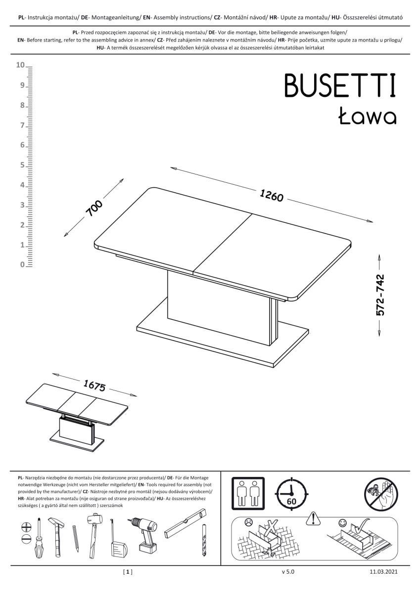Busetti je izvrstan izbor za one koji žele maksimalno iskoristiti prostor u dnevnom boravku ili blagovaonici. Njegov raztegljivi mehanizam omogućuje brzo prilagođavanje, pa ga možete koristiti za različite prigode – od jutarnje kave do večernjeg druženja s prijateljima. Površinu je jednostavno čistiti mekom, lagano vlažnom krpom, bez agresivnih sredstava za čišćenje. Zbog kvalitetnih materijala otporan je na ogrebotine i svakodnevno trošenje.