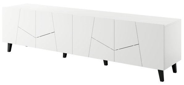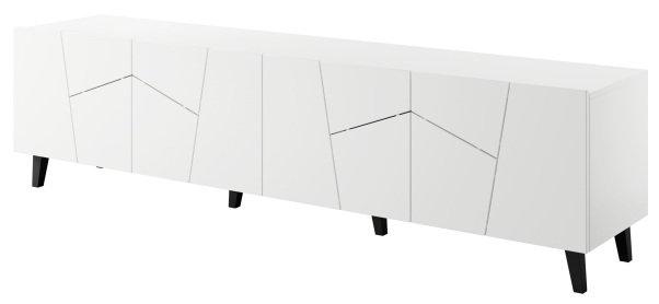 TV komoda Etna u bijeloj boji predstavlja suvremeno rješenje za organizaciju dnevnog prostora. S dovršenom kombinacijom matiranog izgleda i bezvremenske bjeline komoda se bez poteškoća uklapa u različite stilove unutarnjeg uređenja – od minimalističkog do skandinavskog. Izrađena je od kvalitetnih materijala koji osiguravaju stabilnost, jednostavno održavanje i dug životni vijek. Sa svojom širinom od 200 cm nudi dovoljno prostora za televizor, elektroničke uređaje i dekorativne elemente, a istodobno održava čist, uredan izgled prostora.