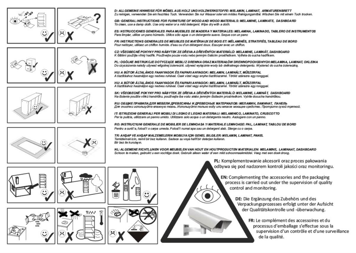 Kućište komode izrađeno je od mat laminirane ploče debljine 16 mm, što osigurava čvrstoću i otpornost na ogrebotine te svakodnevno trošenje. Prednji dijelovi izrađeni su od MDF ploče, presvučene laminatom i PVC folijom, što dodatno štiti površinu od vlage i omogućava jednostavno čišćenje. Zbog kvalitetne obrade svi su rubovi precizno završeni, što pridonosi elegantnom izgledu i osjećaju cjelovitosti.