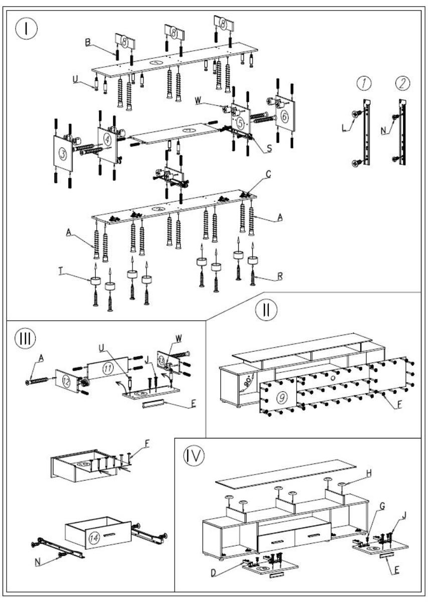 Praktičan unutarnji raspored omogućuje pohranjivanje dodatne opreme, daljinskih upravljača ili igraćih konzola. Ovisno o konfiguraciji fronti, komoda može nuditi kombinaciju zatvorenih ormarića i otvorenih polica, što osigurava funkcionalnost prilagođenu korisniku.