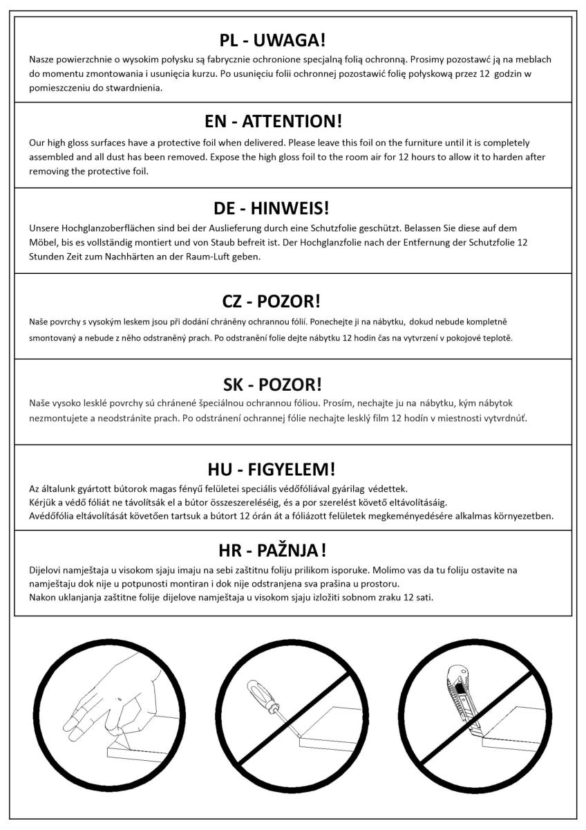 Noge komode izrađene su od plastike, što osigurava stabilnost i istovremeno omogućuje lakše pomicanje namještaja po potrebi. Zbog kvalitetne konstrukcije i promišljene težine komoda je stabilna i pri većem opterećenju.