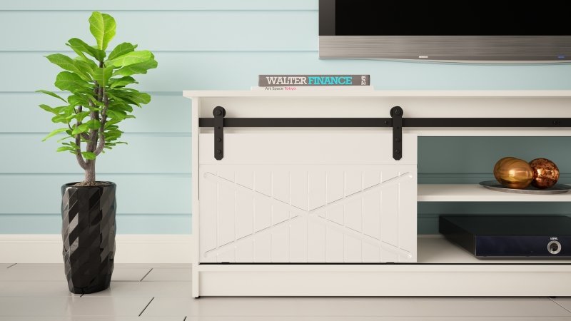 Komoda nudi dovoljno prostora za pohranu multimedijskih uređaja, kabela, knjiga ili dekoracija. Na gornjoj ploči možete jednostavno postaviti televizor, dok je unutrašnjost prikladna za DVD reproduktore, igraće konzole ili zvučne sustave. Klizna vrata omogućuju da predmete po potrebi sakrijete ili izložite, što pridonosi urednosti prostora.