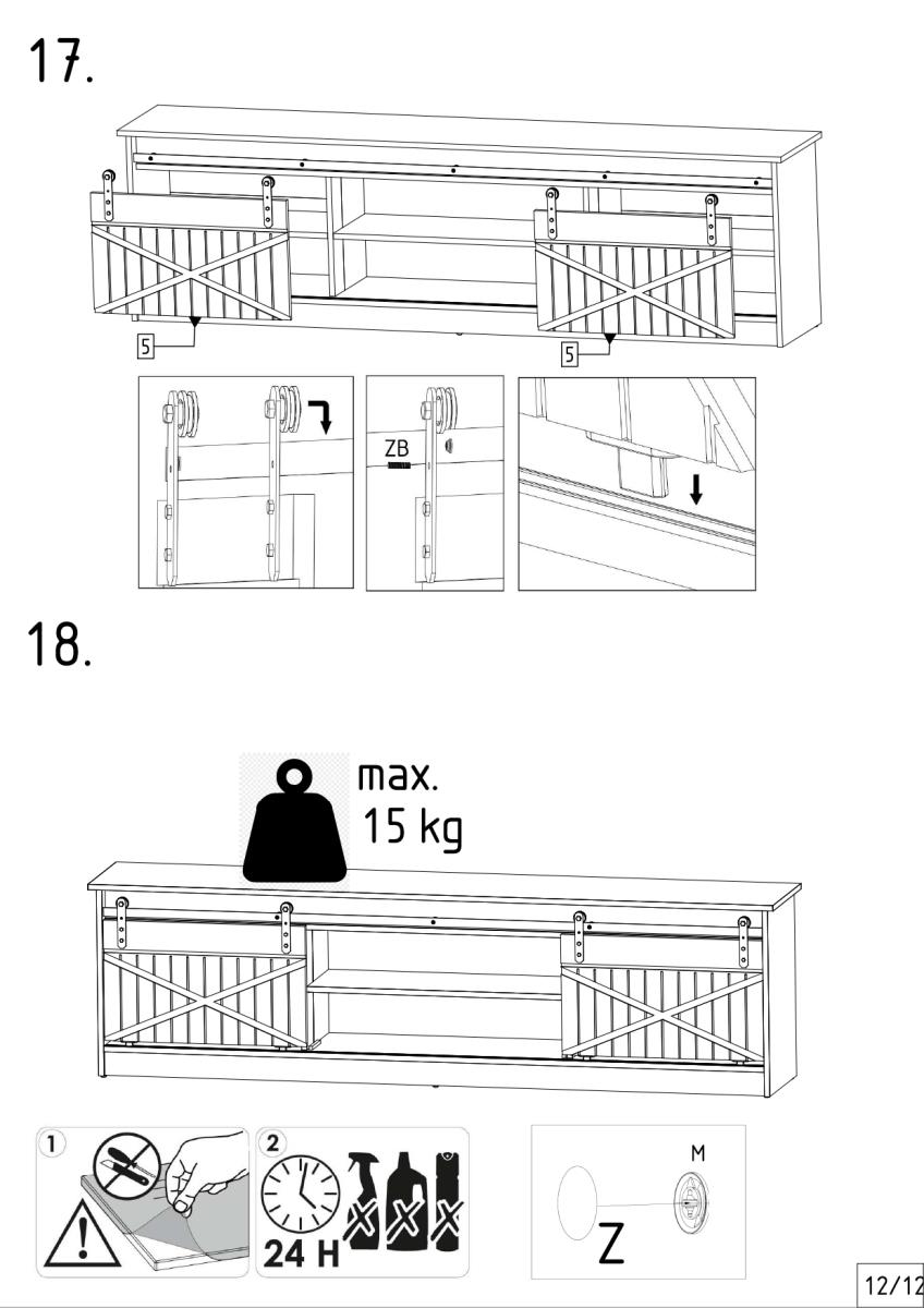Komoda koristi klizni sustav vrata LOFT LAGUNA, koji omogućuje tiho i glatko pomicanje fronti. Takav mehanizam ne zahtijeva dodatni prostor ispred komode, pa je idealan za manje dnevne sobe ili uske prostore. Klizna vrata omogućuju jednostavan pristup unutarnjim ladicama i policama, a istovremeno održavaju uredan izgled. Sustav LOFT LAGUNA poznat je po svojoj pouzdanosti i dugom vijeku trajanja, što predstavlja dodatnu vrijednost za korisnika.
