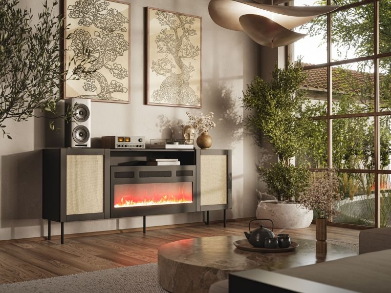 Komoda Juta – EF predstavlja ravnotežu između estetike, kvalitete i uporabnosti. Izrađena od izdržljivog MDF materijala, poduprta metalnim nogama i dopunjena mogućnošću ugradnje kamina, postaje središnji element suvremenog doma. Njena crna mat površina donosi osjećaj urednosti i mira, dok prostrane unutarnje police omogućuju optimalnu organizaciju. Ako tražite komad namještaja koji spaja suvremeni dizajn, praktičnu uporabu i kvalitetnu izradu, komoda Juta EF pouzdan je izbor.