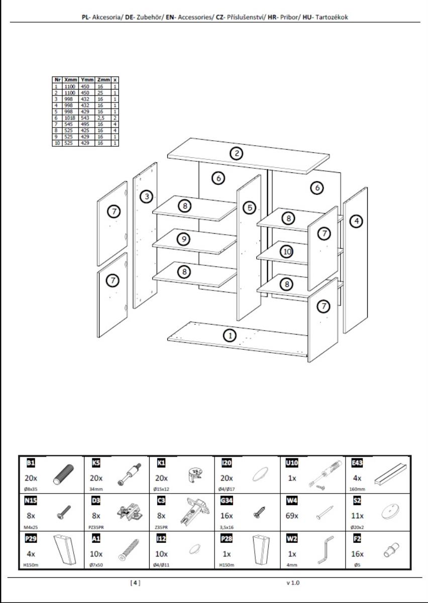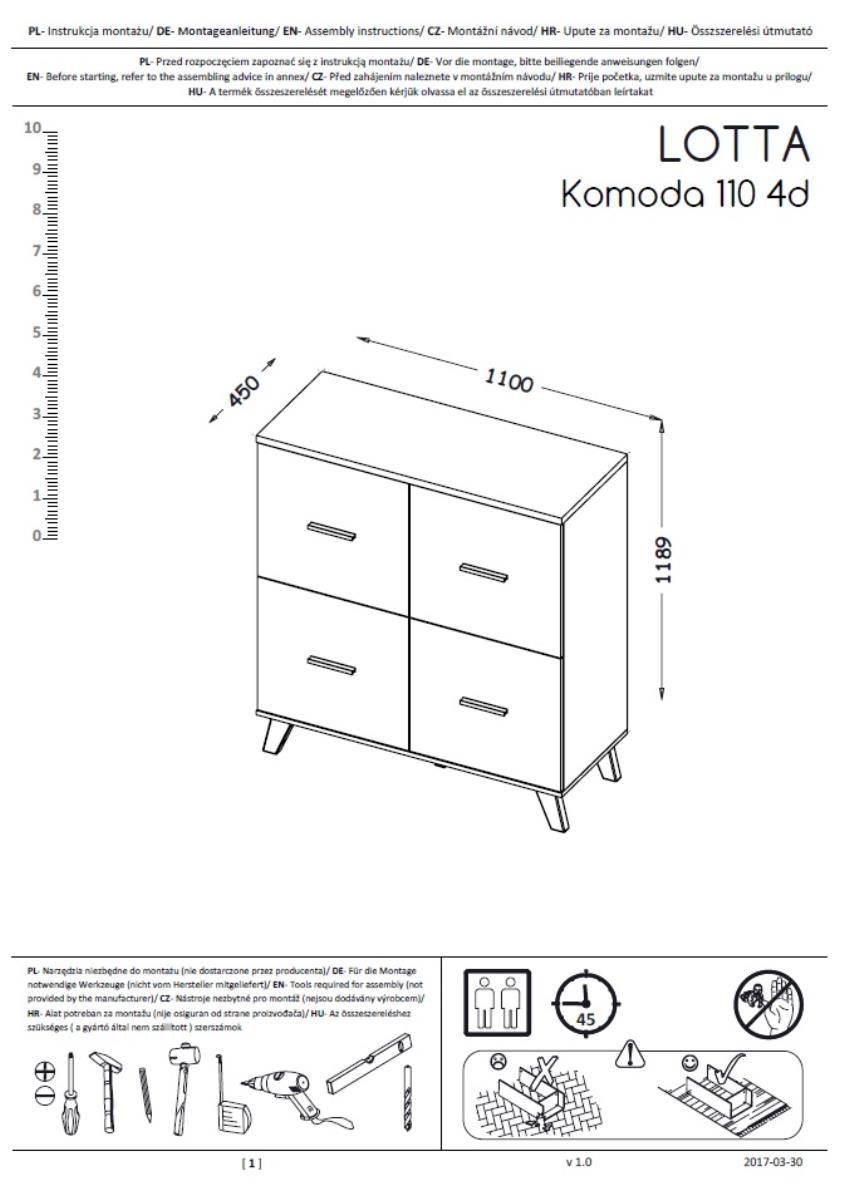 Komoda Lotta 110 cm 4D ima četvero vrata koja omogućuju dobru organizaciju unutarnjeg prostora. Iza vrata skriva se dovoljno prostora za pohranu tekstila, dokumenata, posuđa ili drugih kućanskih predmeta. Kombinacija zatvorenih površina omogućuje da prostor ostane uredan i vizualno čist, jer su svi predmeti sigurno pospremljeni. Komoda je prikladna za uporabu u različitim prostorijama – u dnevnoj sobi kao dio namještajne kompozicije, u blagovaonici kao spremišna komoda ili u predsoblju kao praktično rješenje za odlaganje sitnih predmeta.