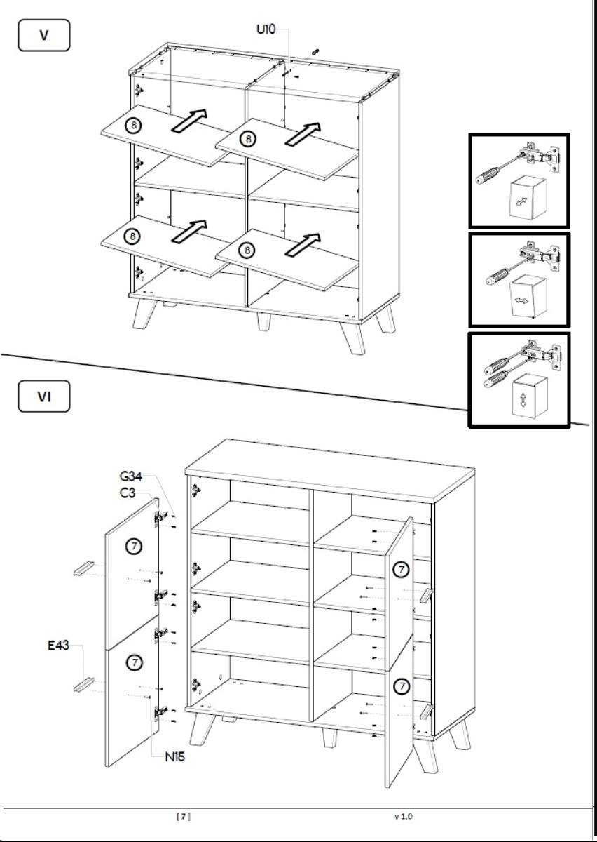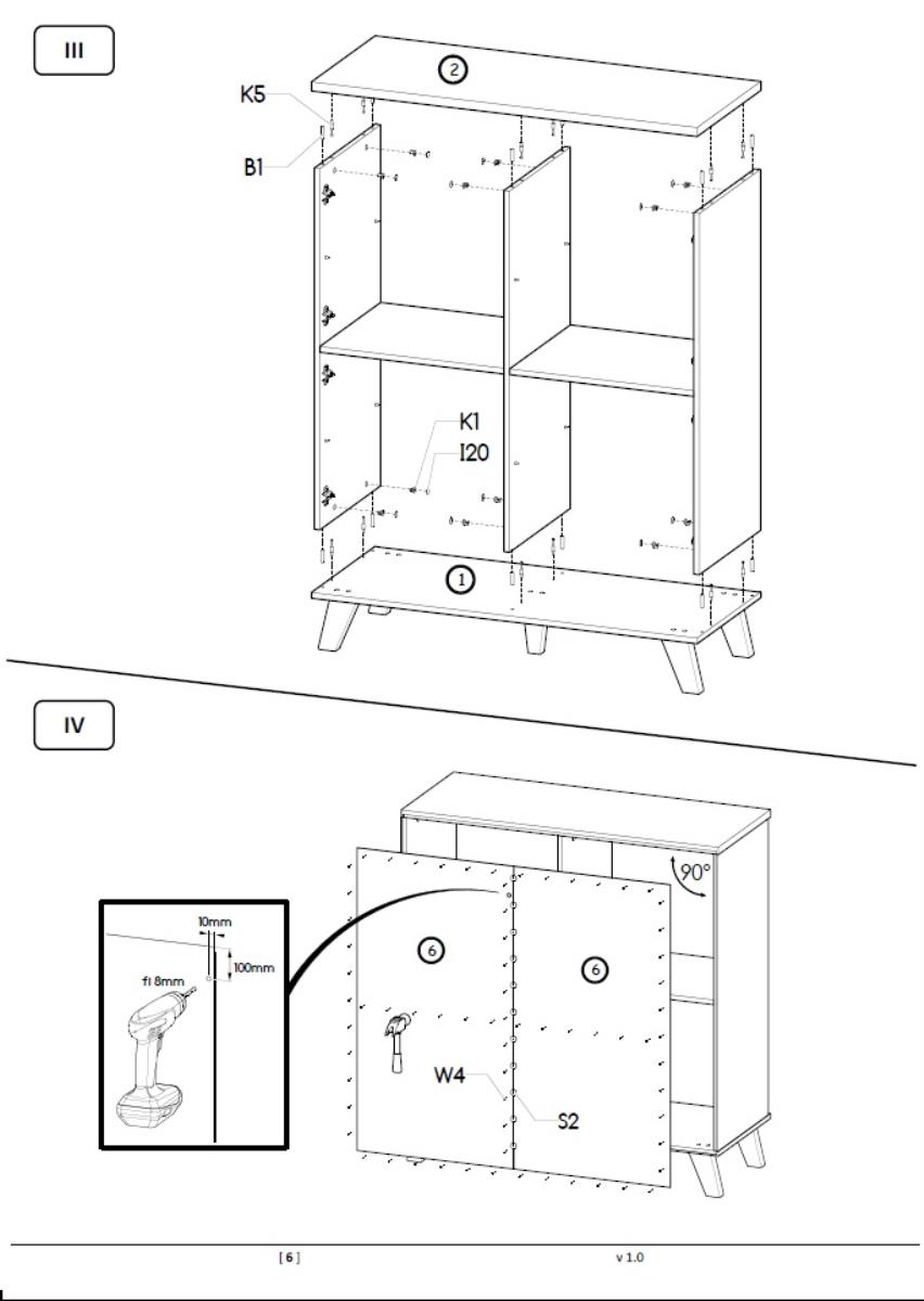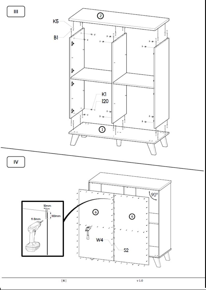 Kućište je izrađeno od 16 mm debele mat iverice, što osigurava čvrstoću i stabilnost konstrukcije. Ista debljina iverice korištena je i za fronte vrata, što stvara jedinstven izgled i dojam kvalitete. Gornja ploča je nešto deblja – 22 mm mat iverica – pa je otpornija na opterećenja i pogodna za odlaganje dekorativnih predmeta, knjiga ili svjetiljki. Površina svih elemenata je matirana, što smanjuje vidljivost otisaka prstiju i naglašava prirodnu teksturu materijala.