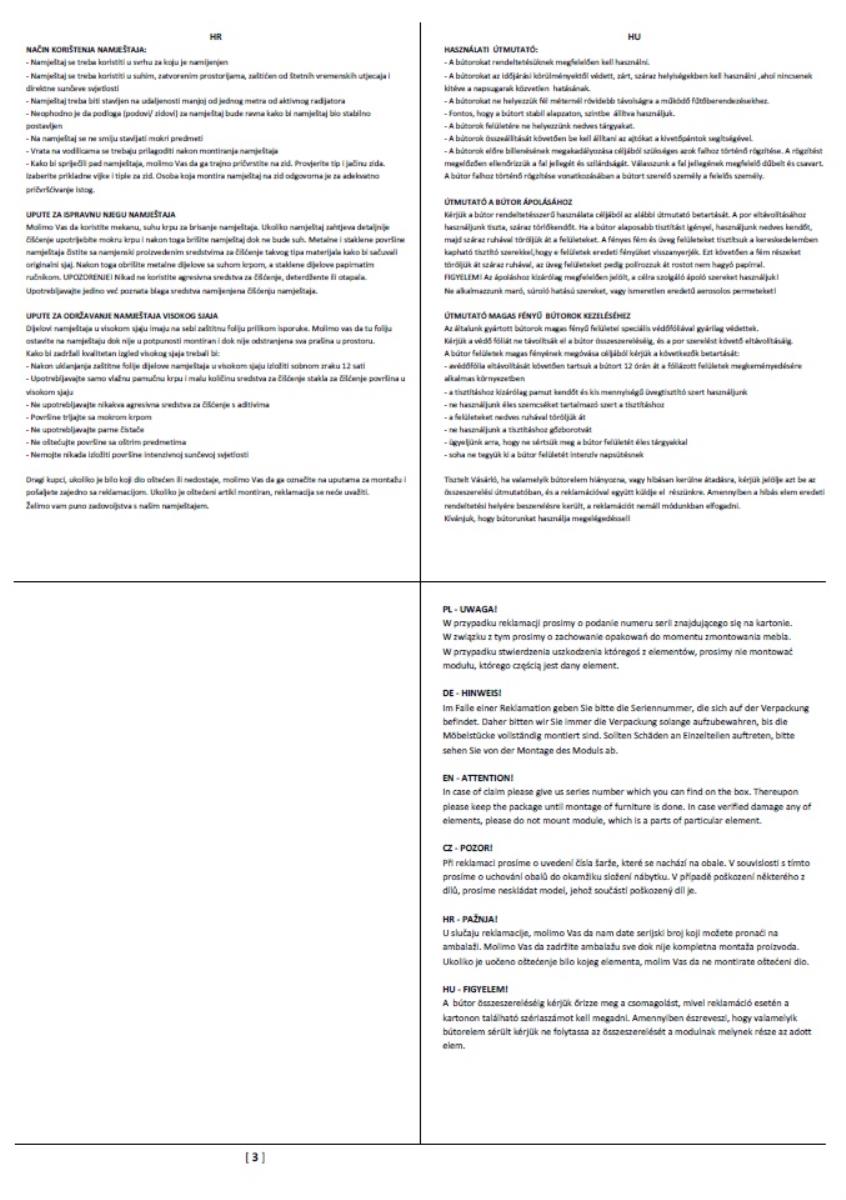 Mat površine od iverice lako se čiste mekom, lagano vlažnom krpom. Površina je otporna na uobičajene mrlje, pa je ormar prikladan i za svakodnevnu upotrebu u prostorima s više kretanja. Drveni dijelovi, obrađeni u nijansi hrasta sonoma, zadržavaju svoj izgled dugo vremena ako se njeguju blagim sredstvima za čišćenje bez jakih otapala.