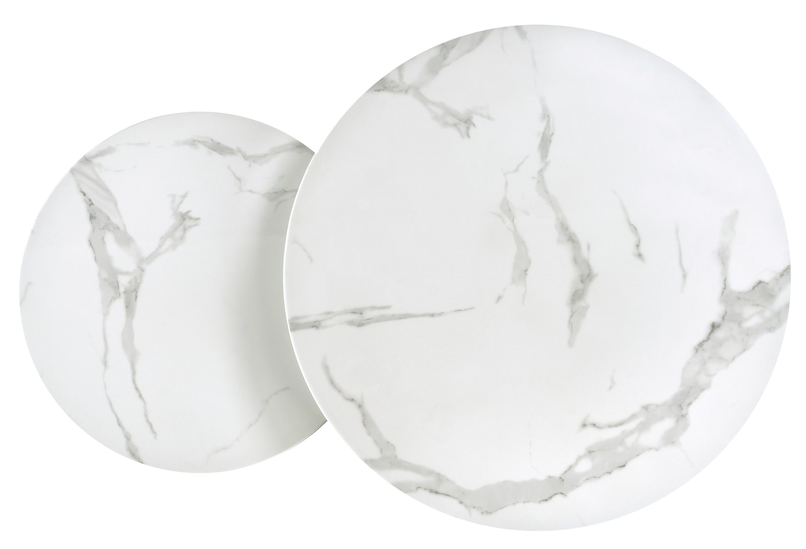 Okvir stolića Mercury izrađen je od nehrđajućeg čelika, što znači da su konstrukcijski čvrsti, otporni na koroziju i jednostavni za čišćenje. Površina u imitaciji bijelog mramora osigurava izgled prirodnog kamena bez potrebe za zahtjevnim održavanjem. Mramorna tekstura vizualno je izražajna, ali istovremeno suptilna, pa se odlično uklapa s brojnim kombinacijama boja i materijala namještaja u dnevnoj sobi.