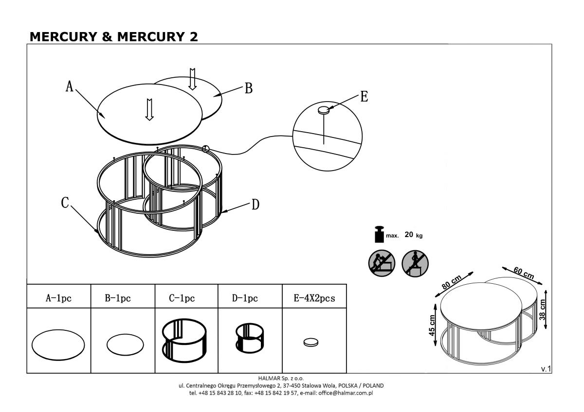 Set Mercury izrađen je u tvornici Halmar u Kini, pod nadzorom proizvođača poznatog po preciznoj obradi materijala i suvremenim proizvodnim postupcima. Svaki stolić izrađen je s naglaskom na funkcionalnost i estetiku, što se odražava u preciznim spojevima, glatkim površinama i stabilnoj konstrukciji.