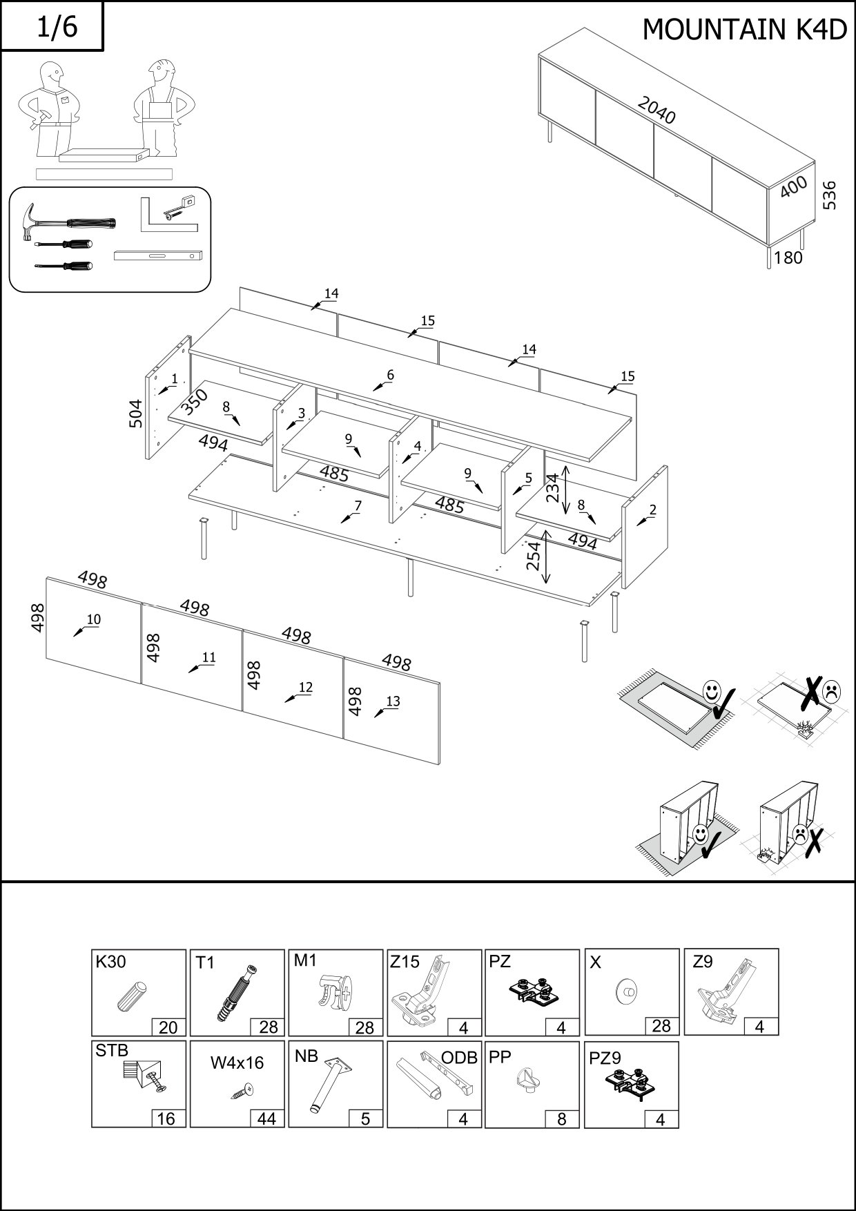 Komoda je podijeljena na četiri vrata segmenta (4D), koji omogućuju preglednu organizaciju pohranjenih predmeta. Sustav Push to open omogućuje udobno otvaranje bez klasičnih ručki – laganim pritiskom vrata se otvaraju meko i tiho. Takav mehanizam održava čiste linije fronte i pridonosi modernom izgledu. Unutrašnjost nudi dovoljno prostora za pohranu posuđa, tekstila ili dokumenata, ovisno o namjeni prostora u kojem se koristi.