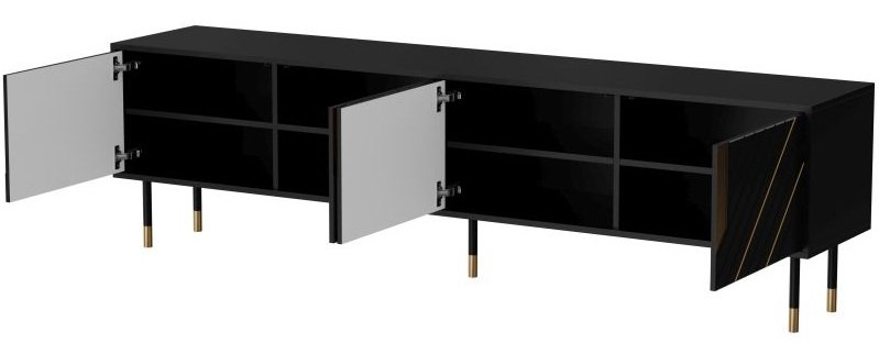 Elegantna crna mat površina sa zlatnim naglascima: TV komoda Mountain 200 cm 4D – Halmar.