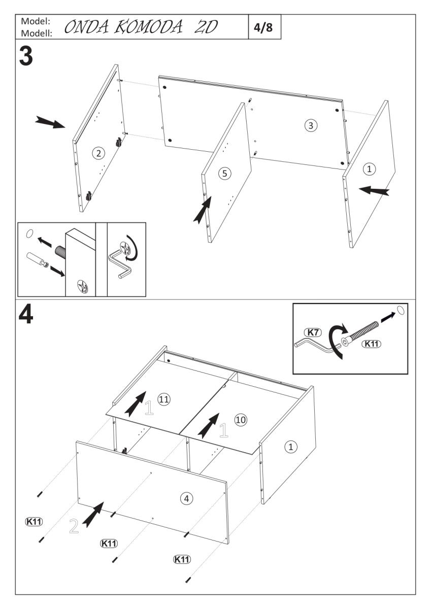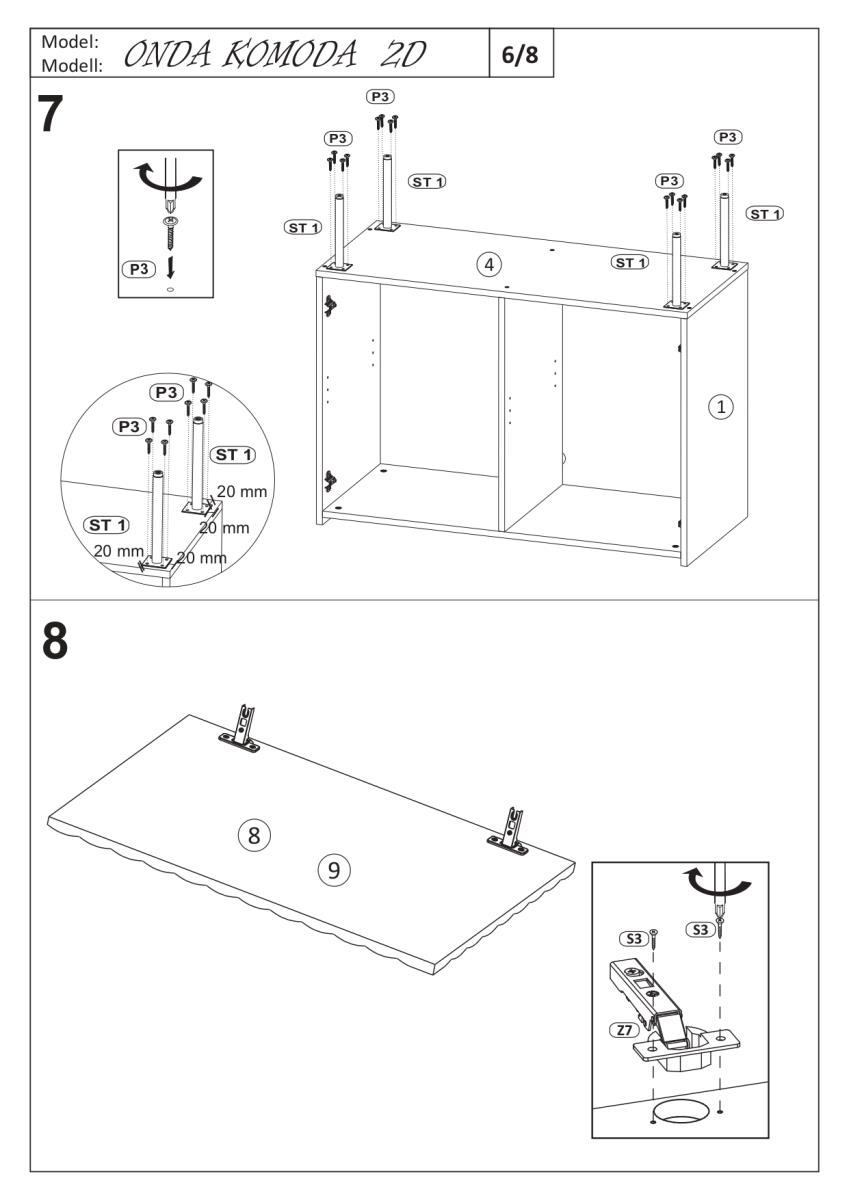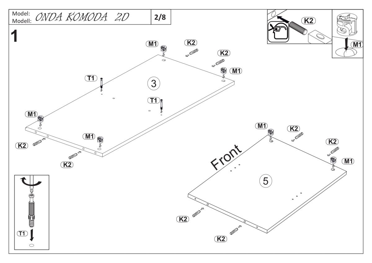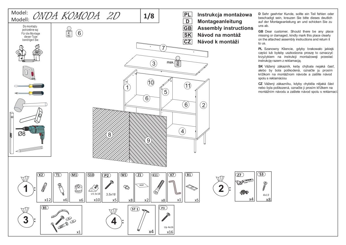 Komoda Onda 2D uključuje dva prostrana ormarića s vratima koje odlikuju metalne šarke s tihim zatvaranjem. Ovaj sustav omogućuje nježno i tiho zatvaranje vrata, što povećava udobnost svakodnevne uporabe te sprječava trošenje materijala. Unutrašnjost nudi dovoljno prostora za pohranu rublja, dokumenata, posuđa ili drugih kućanskih predmeta, zbog čega je komoda prikladna za različite prostore i namjene.