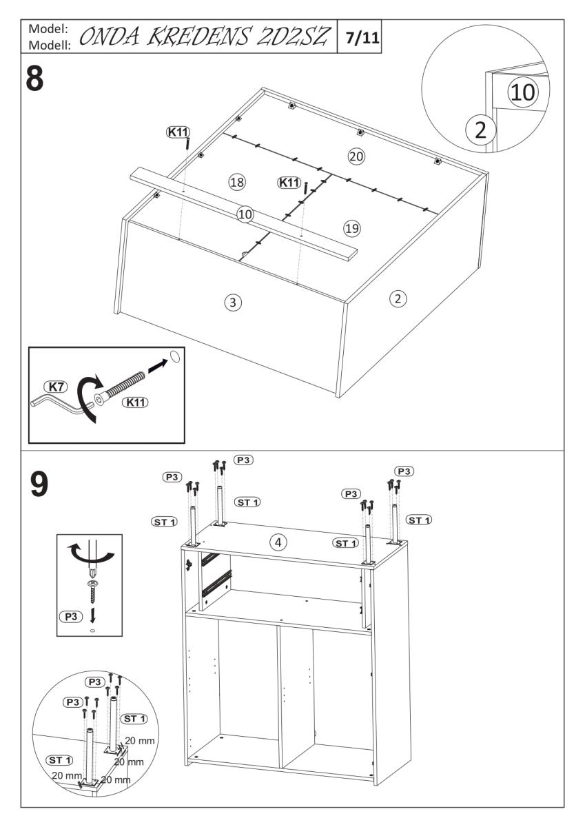 Stabilnost i moderan karakter komode upotpunjuju čelične noge visine 200 mm i promjera Ø20 mm. Zahvaljujući svojoj metalnoj strukturi osiguravaju čvrstu potporu, a istovremeno omogućuju lakše čišćenje poda ispod komada namještaja. Metalni elementi također su estetski usklađeni s kolorističkom shemom komode, što naglašava njezin moderan karakter.