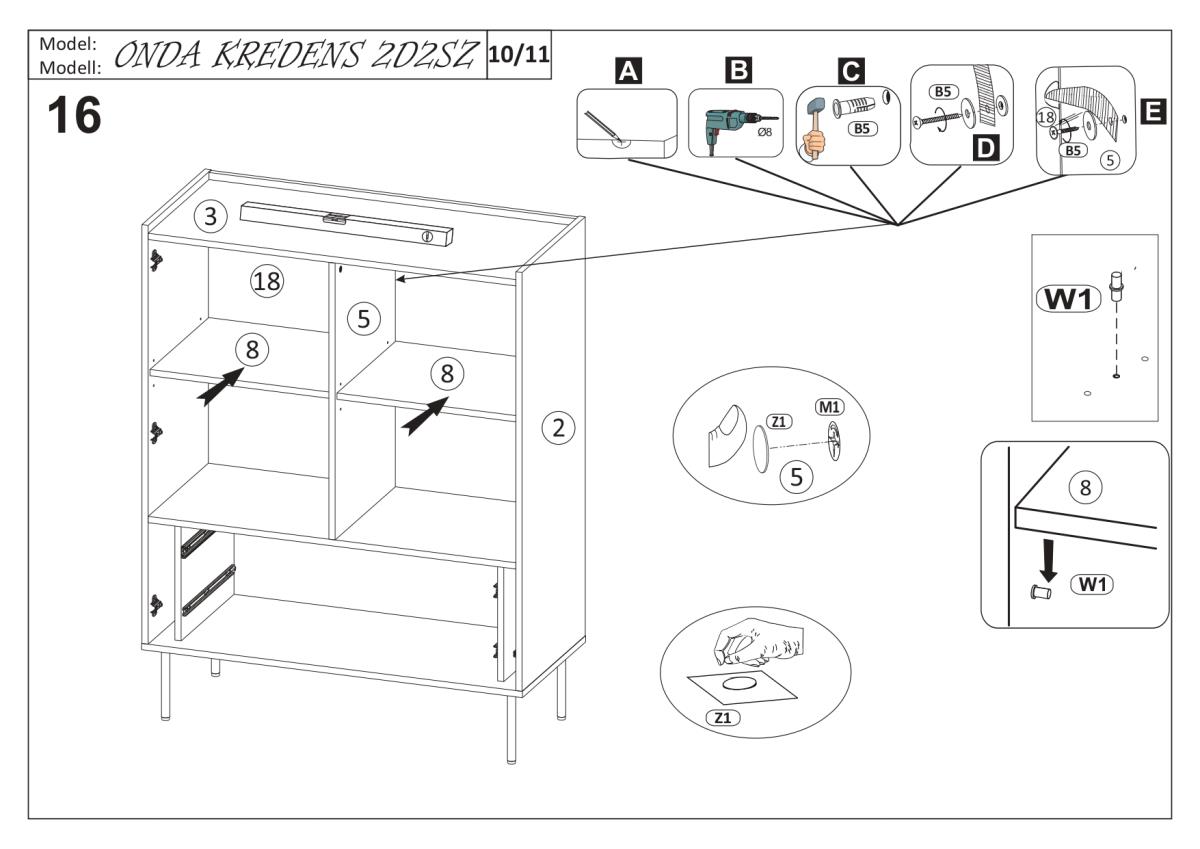 Komoda Onda 2D nudi dovoljno prostora za pohranu različitih predmeta – od tekstila i dokumenata do dekorativnih dodataka. Dvoja vrata s mekanim zatvaranjem omogućuju udobno i tiho korištenje bez iznenadnih udaraca ili buke. Ova funkcionalnost povećava vijek trajanja namještaja i osigurava ugodnije korisničko iskustvo, osobito u prostorima u kojima se traži mirno i uredno okruženje.