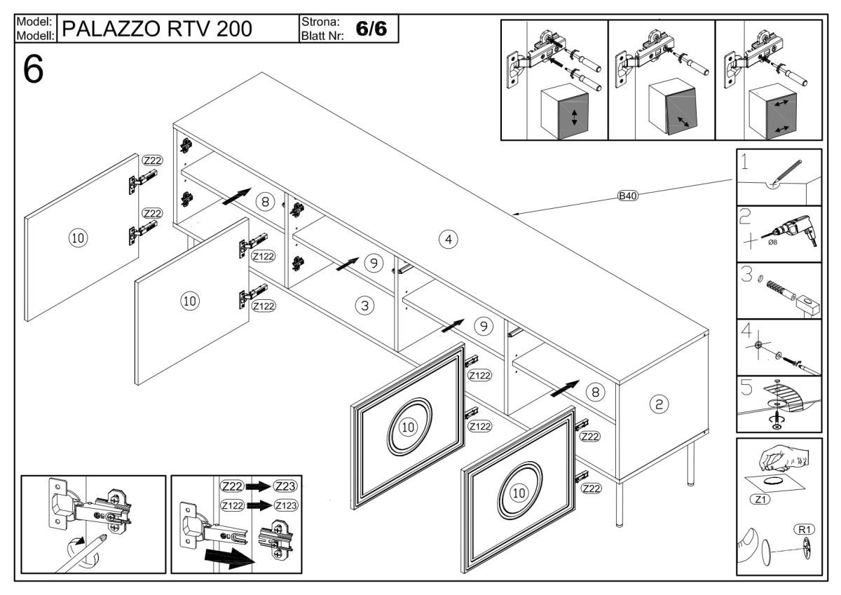 TV komoda Palazzo 200 cm 4D marke Halmar kombinira moderan dizajn, funkcionalnost i izdržljive materijale, zbog kojih se bez poteškoća uklapa u različite stilove dnevnih soba. Sa svojom širinom od 200 cm i visinom od 60 cm nudi prostranu površinu za televizore većih dimenzija te dovoljno prostora za pohranu multimedijskih uređaja, kablova i dodataka. Komoda je izrađena u Poljskoj, u tvornici proizvođača Halmar, koji je poznat po kvalitetnoj izradi i promišljenim detaljima namještaja za moderne domove.