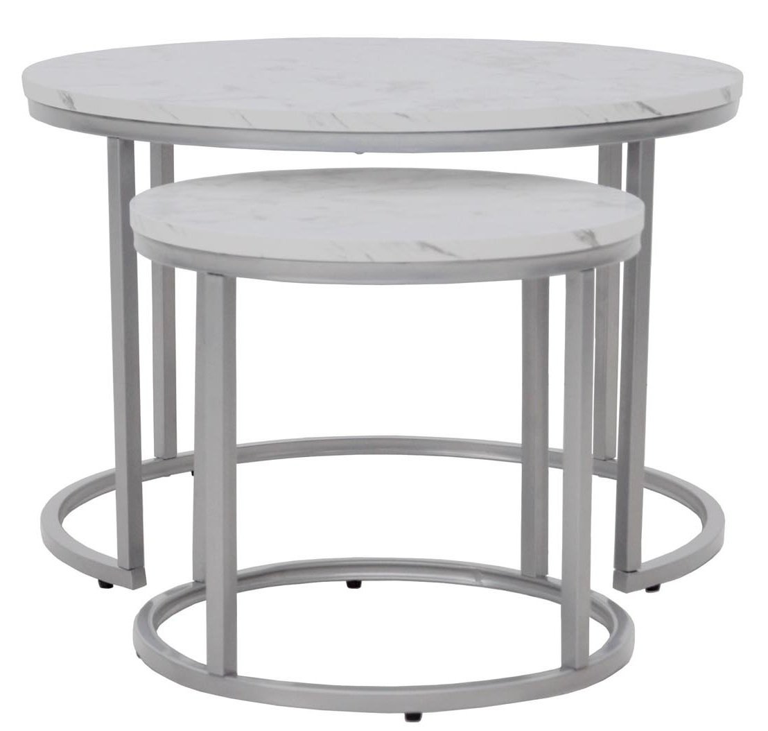 Kombinacija boja u crnom mramoru i srebrnom metalu daje stolićima moderan, a istovremeno bezvremenski izgled. Dekor mramora stvara dojam prestiža i prirodne elegancije, dok metalni okvir donosi industrijski dojam i vizualnu lakoću. Ova estetska kombinacija omogućuje jednostavno usklađivanje s ostalim komadima namještaja, bez obzira prevladava li moderan, skandinavski ili klasičan stil unutarnjeg uređenja.