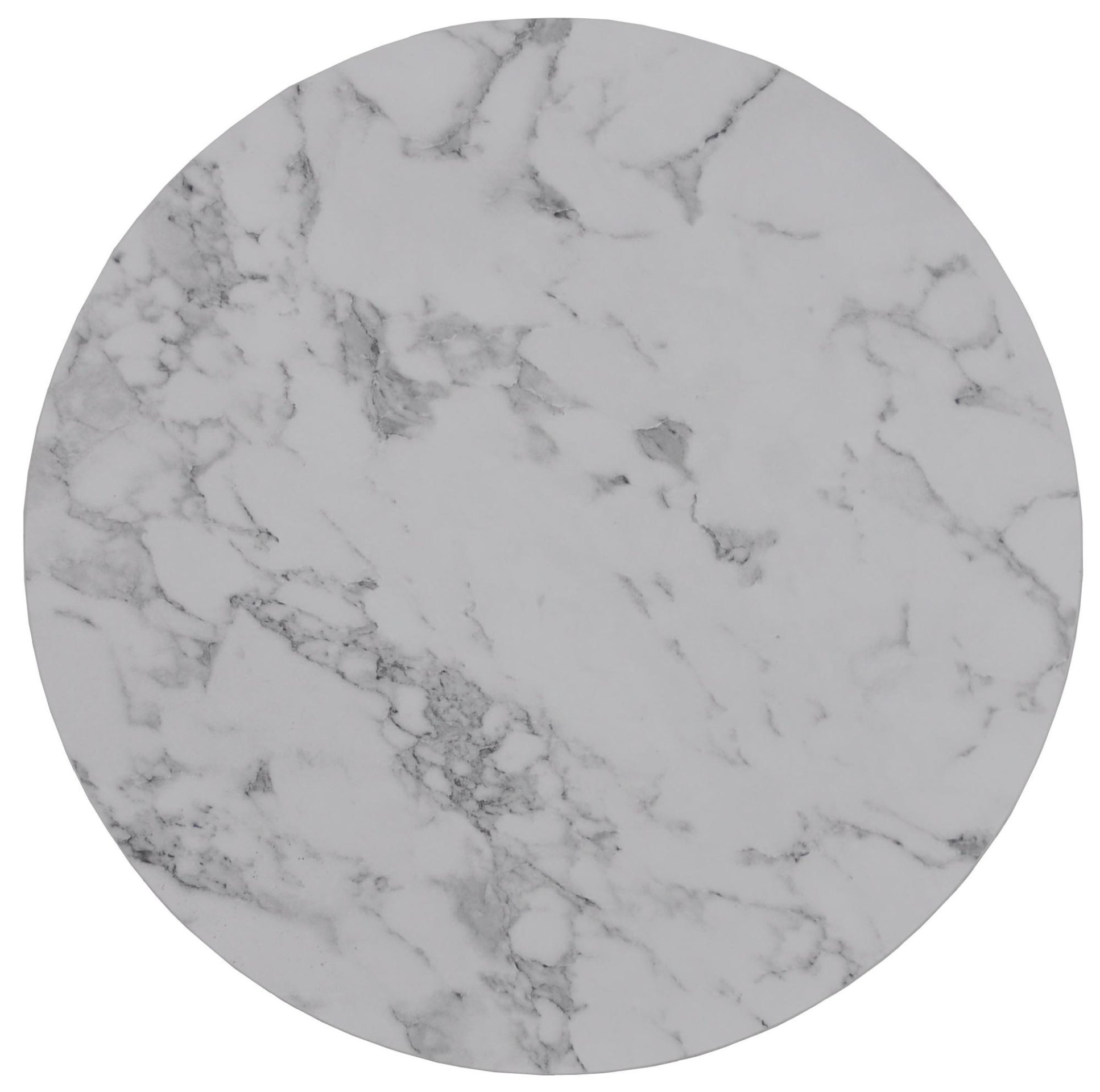Svaki stolić u setu Paola izrađen je od kvalitetnih materijala koji osiguravaju trajnost i vizualnu privlačnost. Površina od laminiranog MDF pločastog materijala otporna je na svakodnevnu upotrebu i jednostavna za čišćenje, jer ne upija tekućine i ne zahtijeva posebno održavanje. Prašno lakirani čelik okvira nadopunjuje izgled mramorne površine, a istovremeno pruža stabilnost i konstrukcijsku pouzdanost. Takva kombinacija materijala omogućuje dug životni vijek proizvoda te očuvanje besprijekornog izgleda i nakon više godina korištenja.