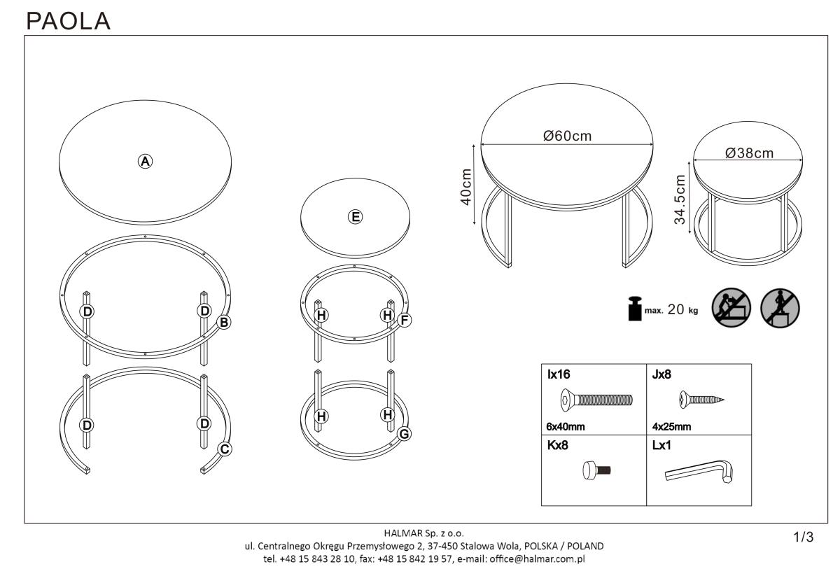 Set dvaju klubskih stolića Paola marke Halmar spaja eleganciju i funkcionalnost u suvremenom dizajnu, koji se lako uklapa u različite stilove unutarnjeg uređenja. Stolići se odlikuju kombinacijom površine u izgledu crnog mramora te metalnog okvira u srebrnoj boji, što stvara profinjen kontrast između topline dekora i hladnog sjaja metala. Ovaj set idealan je za dnevne sobe, predvorja ili moderne hotelske salone, gdje želimo postići dojam minimalističke profinjenosti.