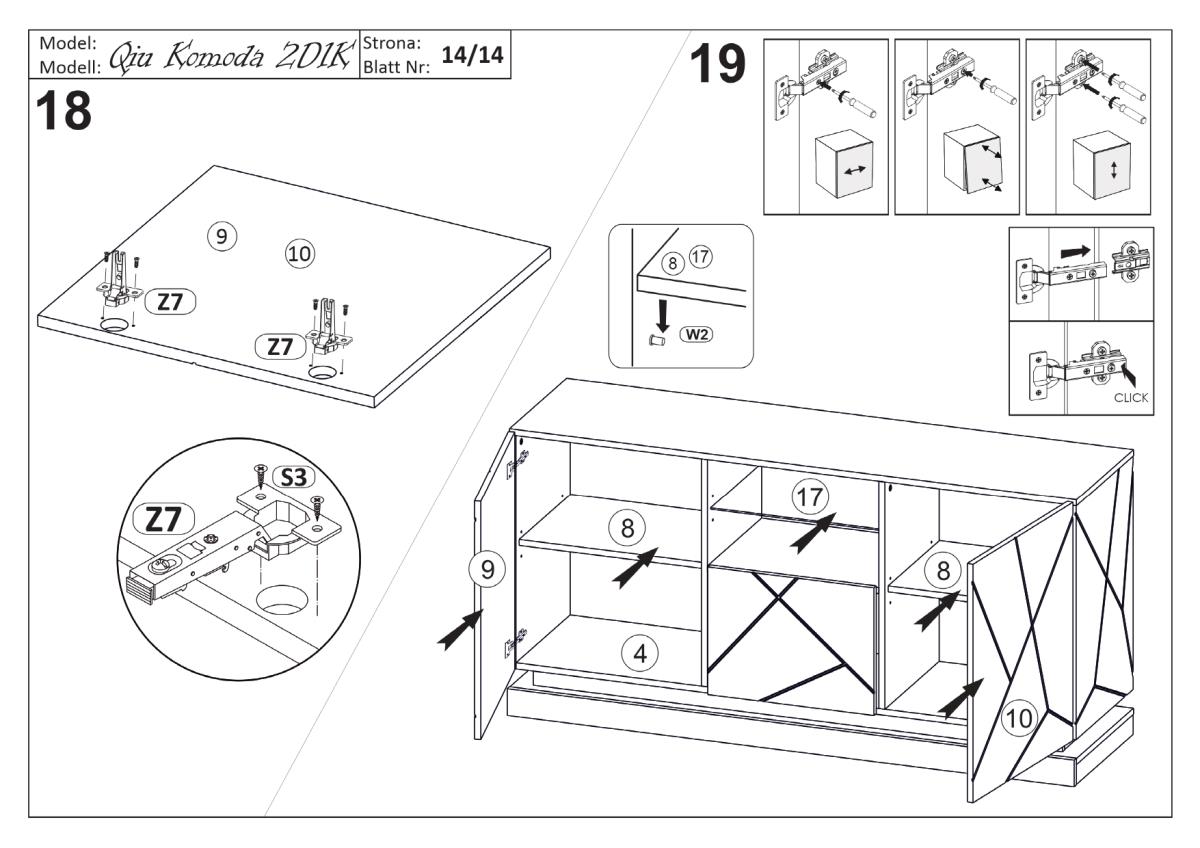 Model Qiu 2D1K uključuje dva ormarića s vratima i jednu ladicu, što omogućuje pregledno pohranjivanje različitih predmeta – od dokumenata i tekstila do dekorativnih dodataka. Vrata i ladica otvaraju se putem integriranih ručki koje su ugrađene u konstrukciju, pa površina ostaje potpuno glatka. Takvo rješenje nije samo estetsko, već i praktično, jer olakšava čišćenje i sprječava nakupljanje prašine oko klasičnih ručki. Komoda stoji na postolju, što joj daje stabilnost i omogućuje jednostavno postavljanje uz zid bez vizualnih prekida.