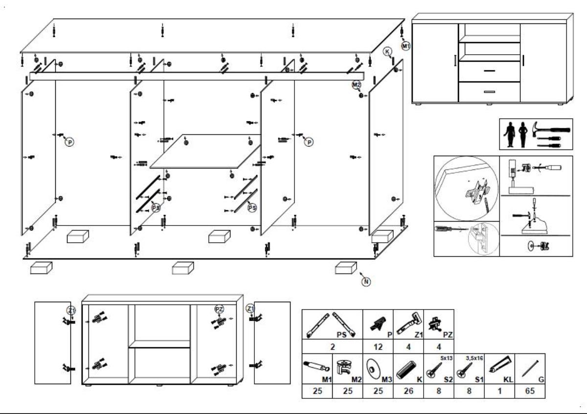 Zahvaljujući svojoj širini od 164 cm, komoda nudi mnogo korisne površine na vrhu, gdje možete izložiti dekorativne predmete, fotografije ili lampe. Dubina od 45 cm i visina od 80 cm omogućuju udoban pristup unutrašnjosti ormarića. Komoda je dizajnirana s više prostranih odjeljaka koji nude dovoljno prostora za pohranu rublja, dokumenata, posuđa ili drugih svakodnevnih predmeta. Plastične ručke su diskretne, ali praktične, jer omogućuju lako otvaranje vrata i ladica, a svojim nenametljivim dizajnom savršeno se stapaju s bijelim sjajem fronti.