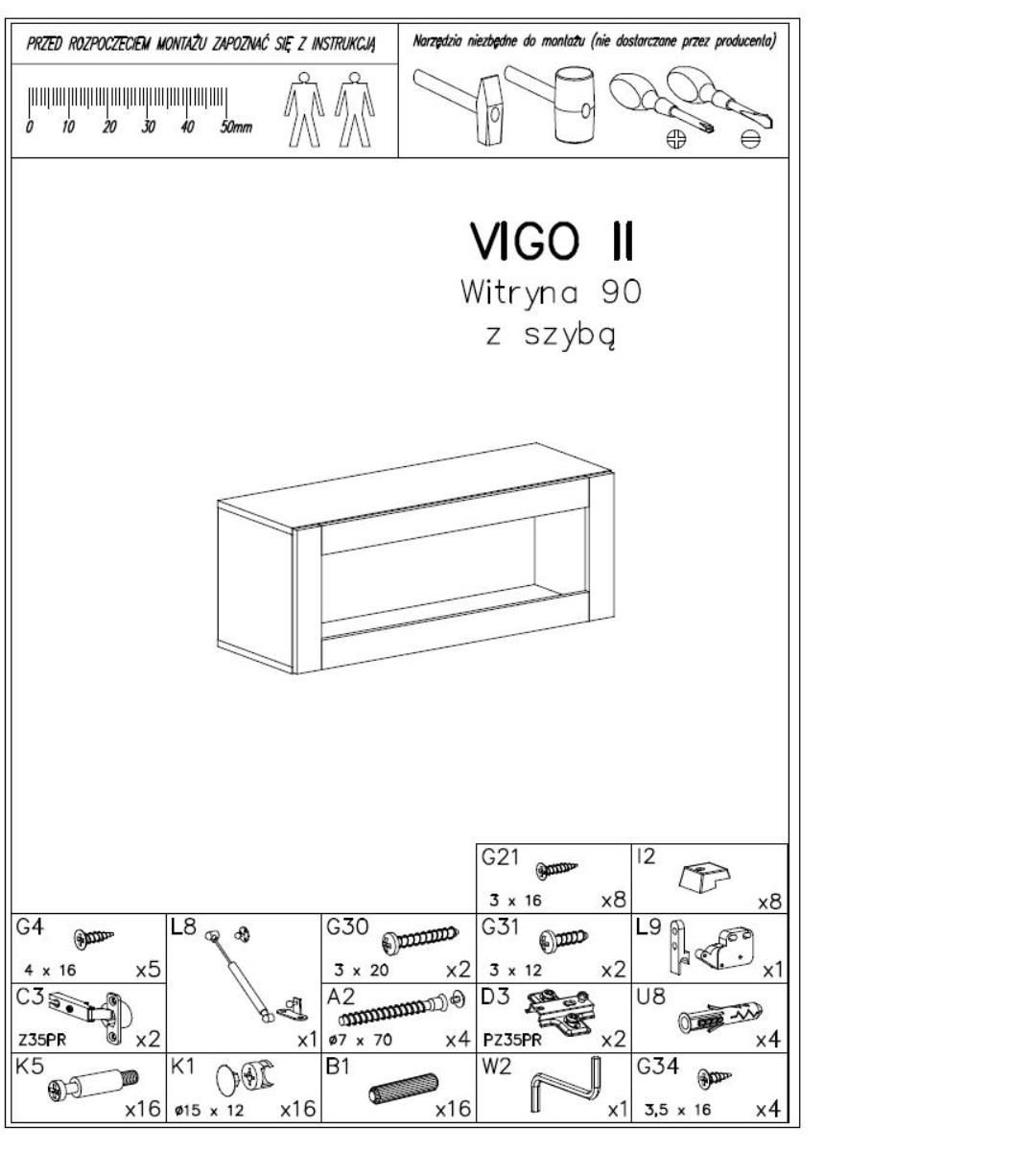 Zahvaljujući svojim kompaktnim dimenzijama zidna vitrina Vigo 90 cm prikladna je za ugradnju u dnevne sobe, blagovaonice ili hodnike. Može stajati samostalno ili biti dio većeg sastava namještaja iz linije Vigo. Montaža na zid omogućuje uštedu prostora na podu i stvara dojam lakoće, budući da vitrina ne opterećuje prostor. Preporučuje se da se montaža izvede prema uputama proizvođača kako bi se osigurala stabilnost i sigurnost upotrebe.
