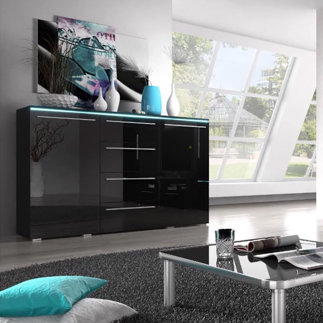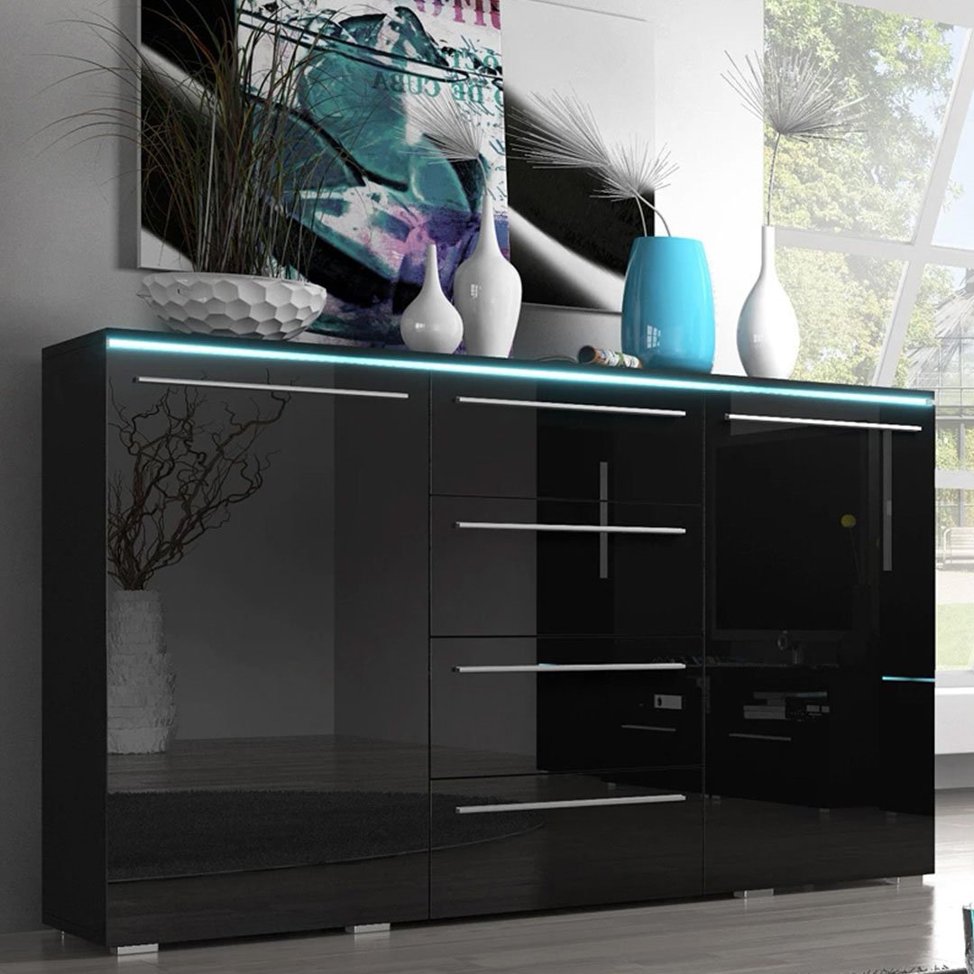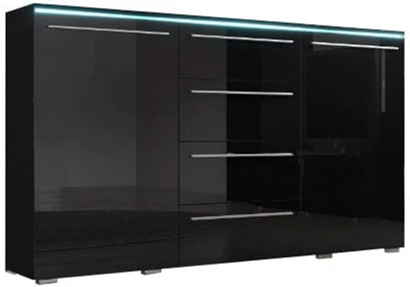 Komoda Amber je dio istoimene kolekcije namještaja za dnevni boravak. Komoda ima četiri ladice u srednjem dijelu i jednu policu sa vratima na svakoj strani.