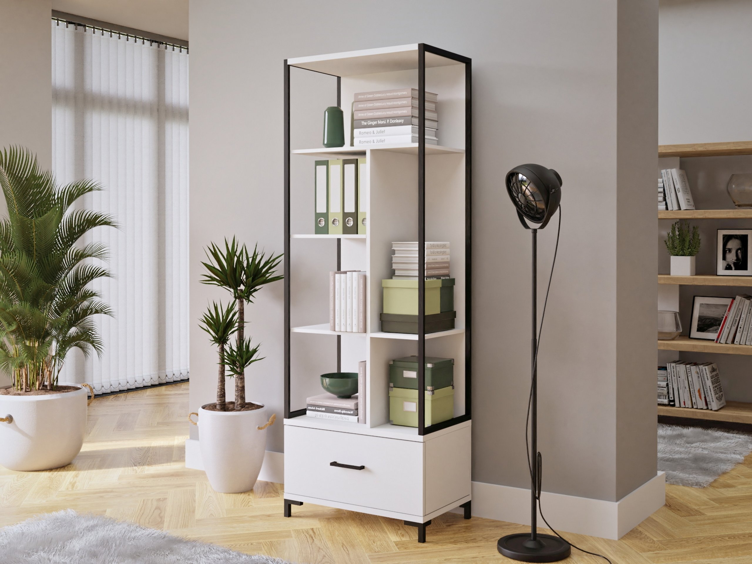 Praktičan poličar za knjige Kammy ima elegantne metalne noge koje naglašavaju poseban šarm i izgled poličara.