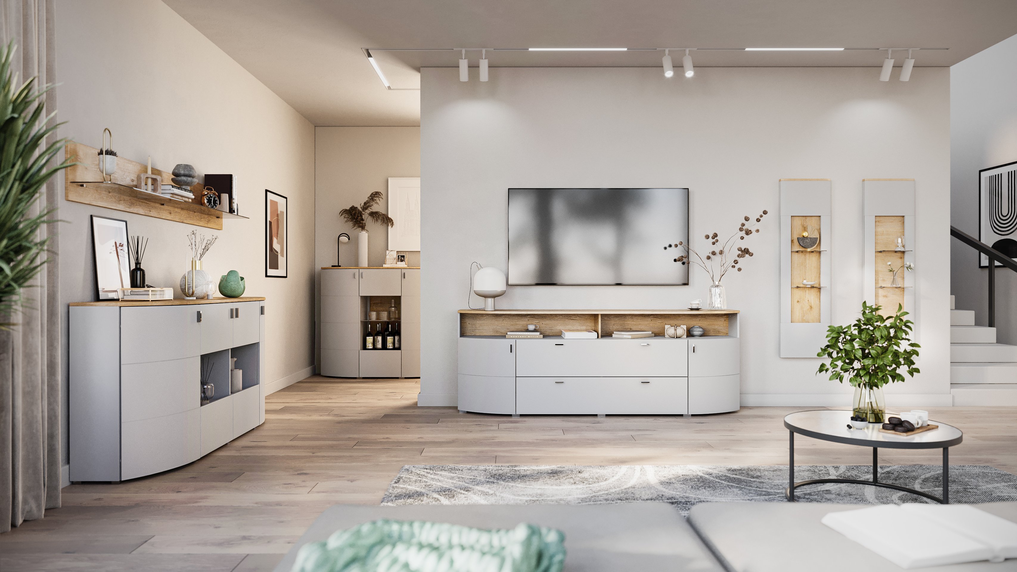 Osim što pruža vizualni užitak, staklo unosi osjećaj prozračnosti i svjetlosti u prostor. Kombinacija svijetlosive površine i toplih tonova dekora stvara savršen balans između suvremenog izgleda i ugodne atmosfere doma. Svaki element pažljivo je izrađen u renomiranoj tvornici Helvetia Meble iz Poljske, što potvrđuje visoku razinu izrade i dugogodišnje iskustvo u proizvodnji kvalitetnog namještaja.