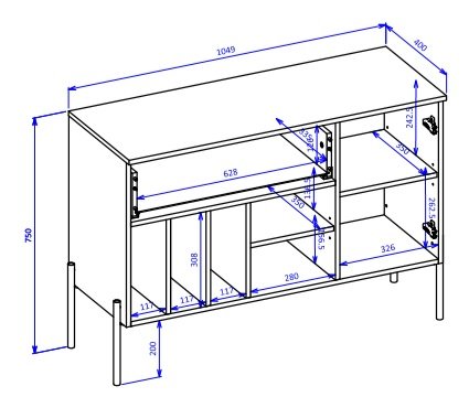Ove dimenzije osiguravaju dovoljno prostora za pohranu, a da korpus ne zauzme previše mjesta u prostoru. Zbog uravnoteženih mjera prikladan je i za manje stambene površine i za veće prostore, gdje može služiti kao dio većeg sastava.