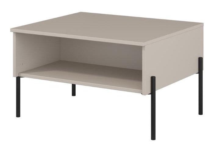 Metalne noge, visoke 270 mm, osiguravaju stabilnu potporu i vizualnu lakoću. Zbog crne mat površine lijepo se uklapaju s neutralnom nijansom korpusa, stvarajući harmoničnu ravnotežu između funkcionalnosti i estetike. Pričvršćivanje nogu osmišljeno je tako da omogućuje jednostavnu montažu i čvrstu vezu s korpusom, što je važno pri svakodnevnoj upotrebi klupskog stolića.
