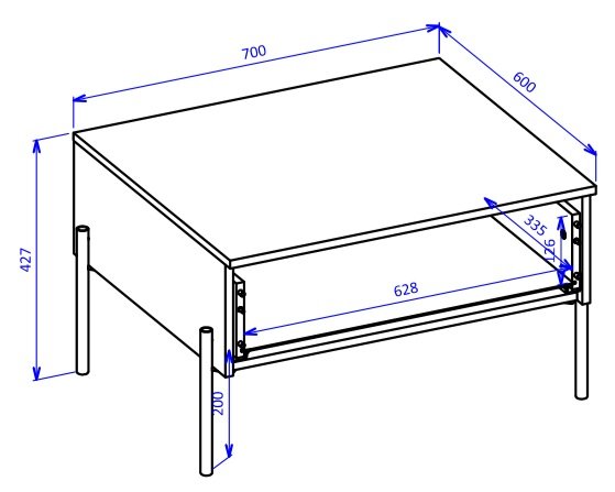 Dimenzije korpusa 70 × 60 × 43 cm omogućuju svestranu upotrebu – bilo kao samostalan klupski stolić ili kao dio većeg modularnog sklopa. Površina od laminirane ploče otporna je na habanje i jednostavna za čišćenje, stoga proizvod zadržava svoj izgled i nakon dugotrajne upotrebe. Rubovi su zaštićeni ABS ili papirnatim završetkom, što dodatno povećava trajnost i sprječava oštećenja pri svakodnevnoj upotrebi.