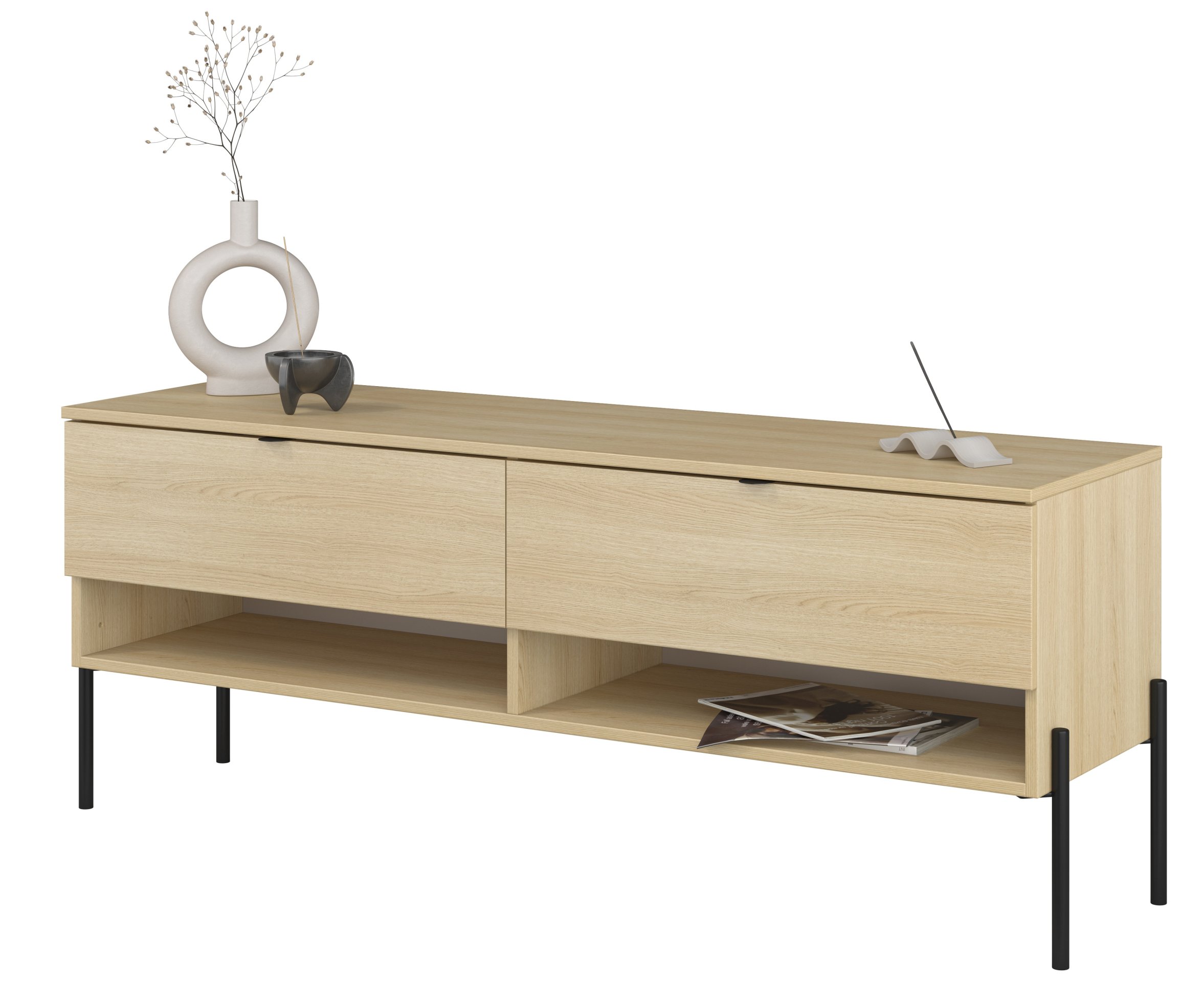Hrast lindberg u kombinaciji s metalnim nogama: TV komoda Ore – Helvetia meble.