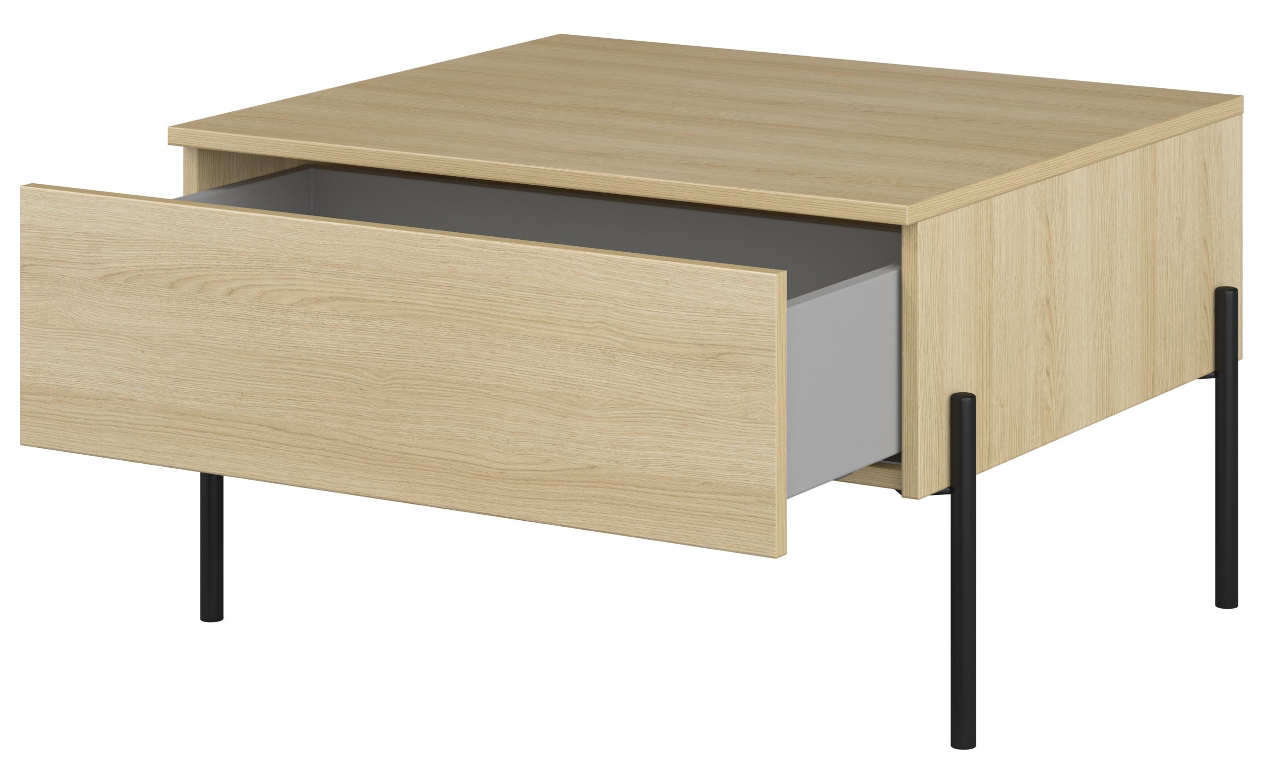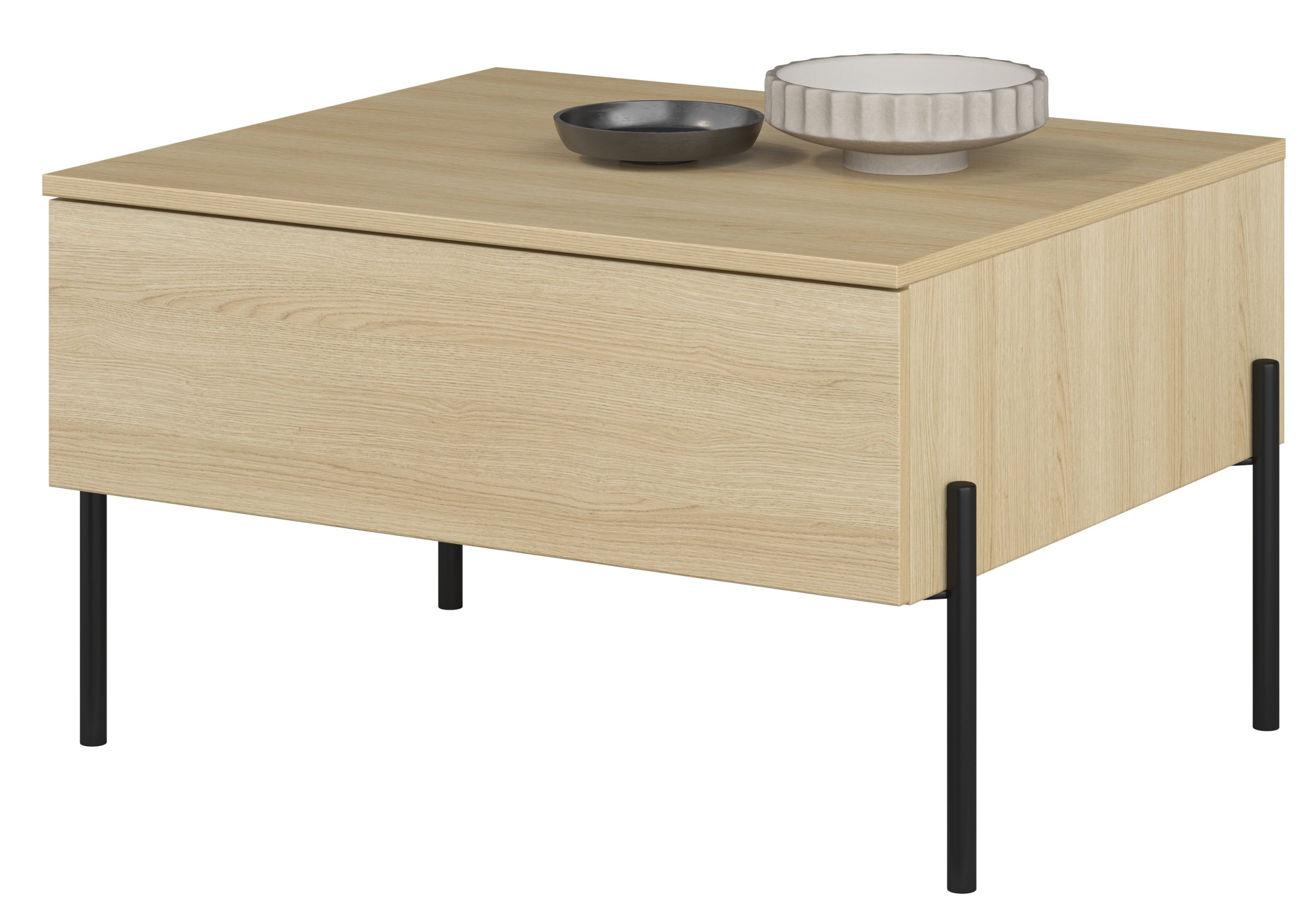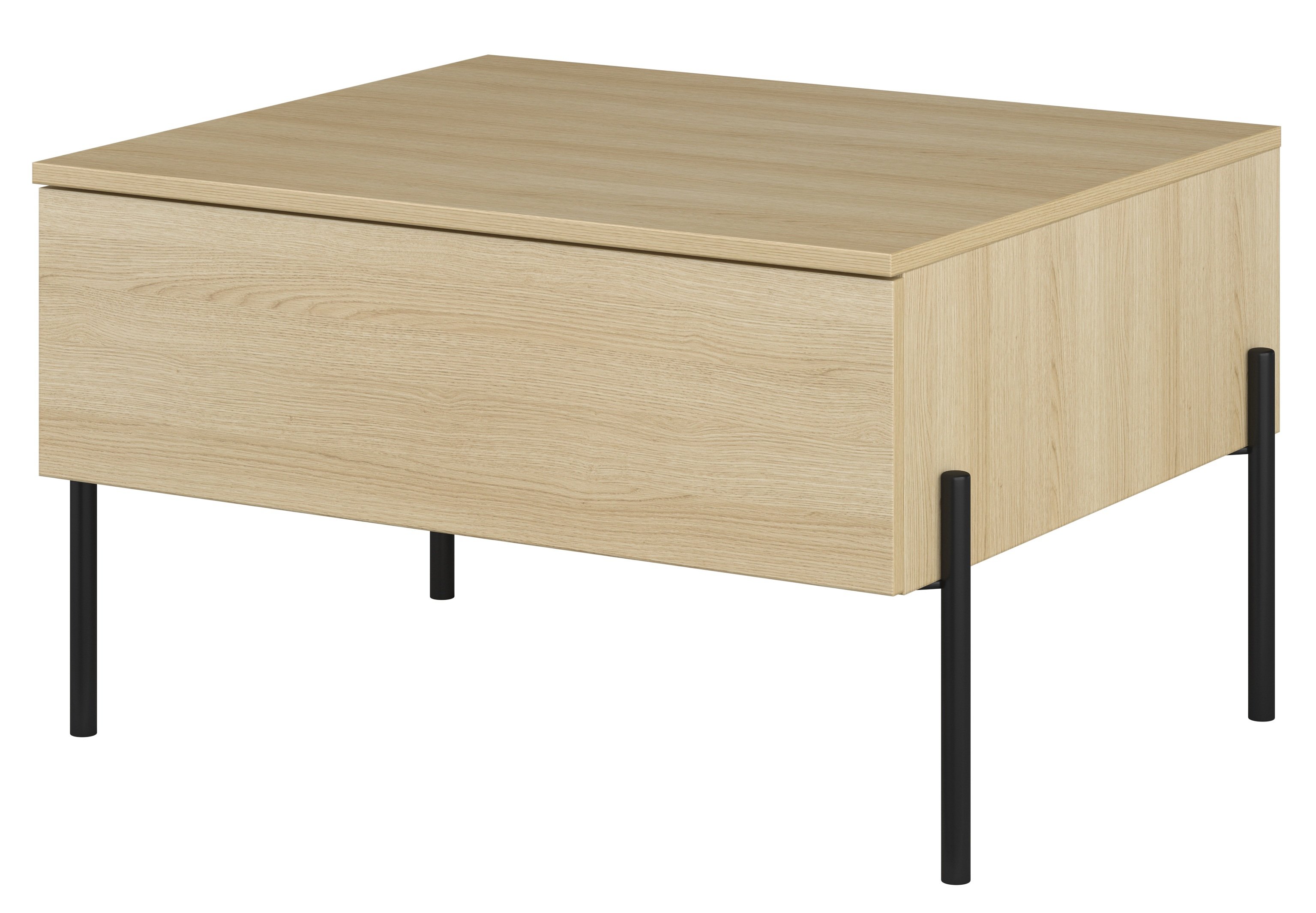 Osnova od laminirane ploče oponaša prirodnu teksturu hrasta lindberg i unosi toplo, ugodno ozračje u prostor. Površina je otporna na svakodnevna opterećenja, ogrebotine i mrlje, pa stolić zadržava svoj izgled i nakon duže upotrebe. Metalne noge visine 270 mm (4 kom) osiguravaju izvrsnu stabilnost i moderan industrijski dojam. Kombinacija metala i imitacije drva stvara uravnotežen kontrast između topline prirodnih tonova i hladne elegancije metalnih elemenata.