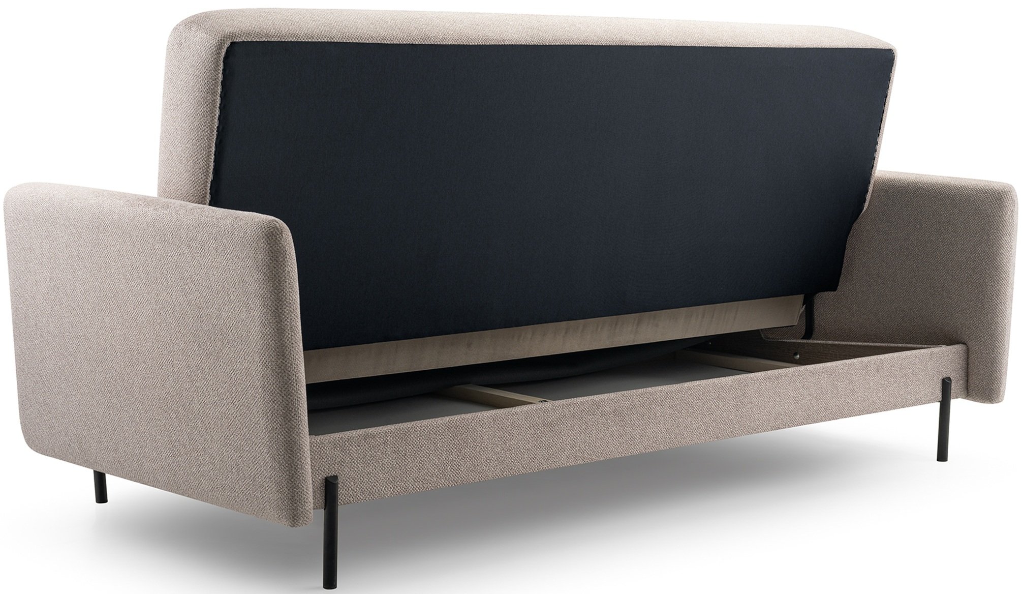 Jedna od praktičnih značajki trosjeda Rufi je ugrađena ladica za posteljinu. Nalazi se ispod sjedala i nudi prostor za pohranu deka, jastuka ili drugih tekstilnih dodataka. Tako vam trosjed ne štedi samo prostor pri spavanju, već i pomaže održavati red u vašem domu.