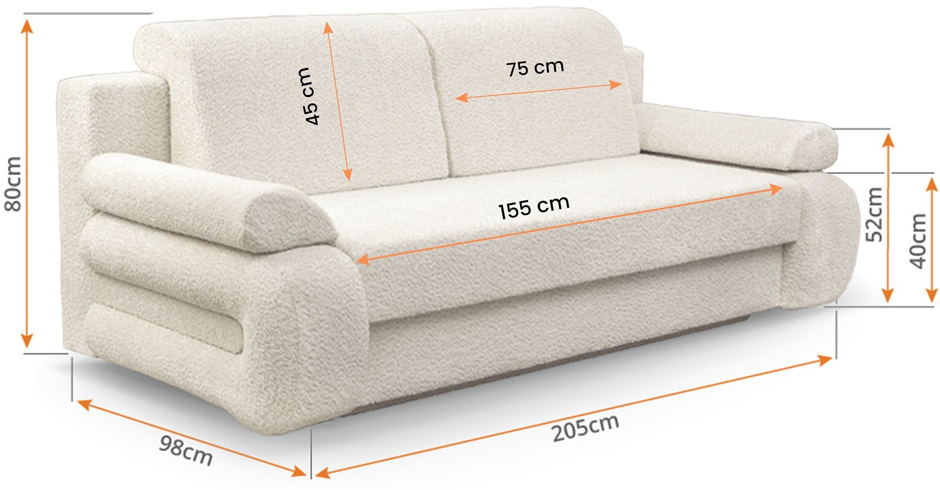 Trosjed Zara poljskog proizvođača Idžczak je moderan komad tapeciranog namještaja koji spaja funkcionalnost, udobnost i estetiku modernog doma. Svojim dimenzijama 205x98x80 cm nudi dovoljno prostora za opušteno sjedenje tijekom dana, a jednostavnim mehanizmom za razvlačenje Euro pretvara se u praktičan ležaj veličine 142x196 cm. Trosjed je izrađen od kvalitetnih materijala koji osiguravaju dug vijek trajanja i stabilnu konstrukciju.