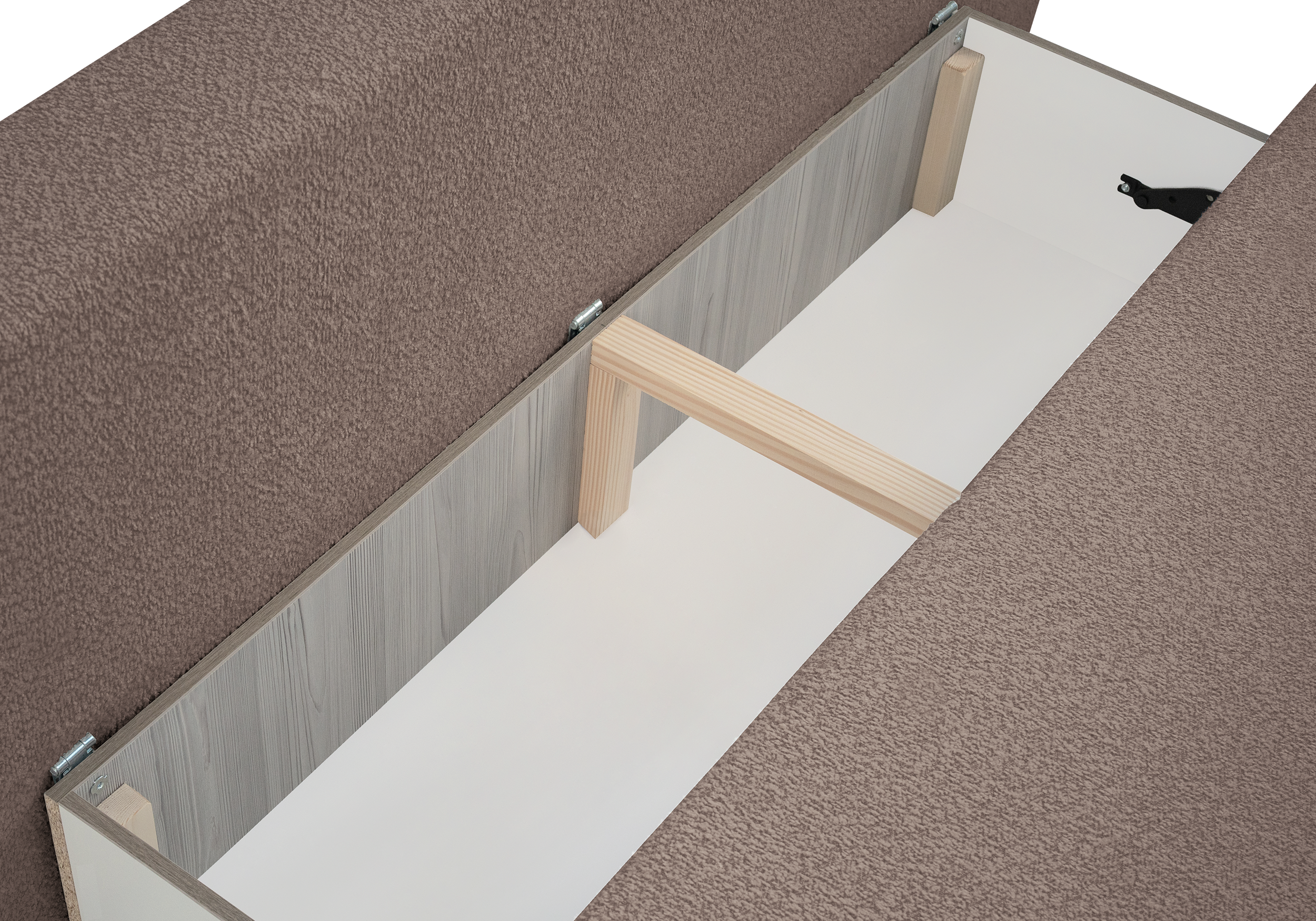 Unutar trosjeda skriva se i ladica za posteljinu koja omogućuje praktično spremanje deka, jastuka ili posteljine. Ova funkcionalnost posebno je korisna u manjim stanovima, gdje je svaki centimetar prostora dragocjen.