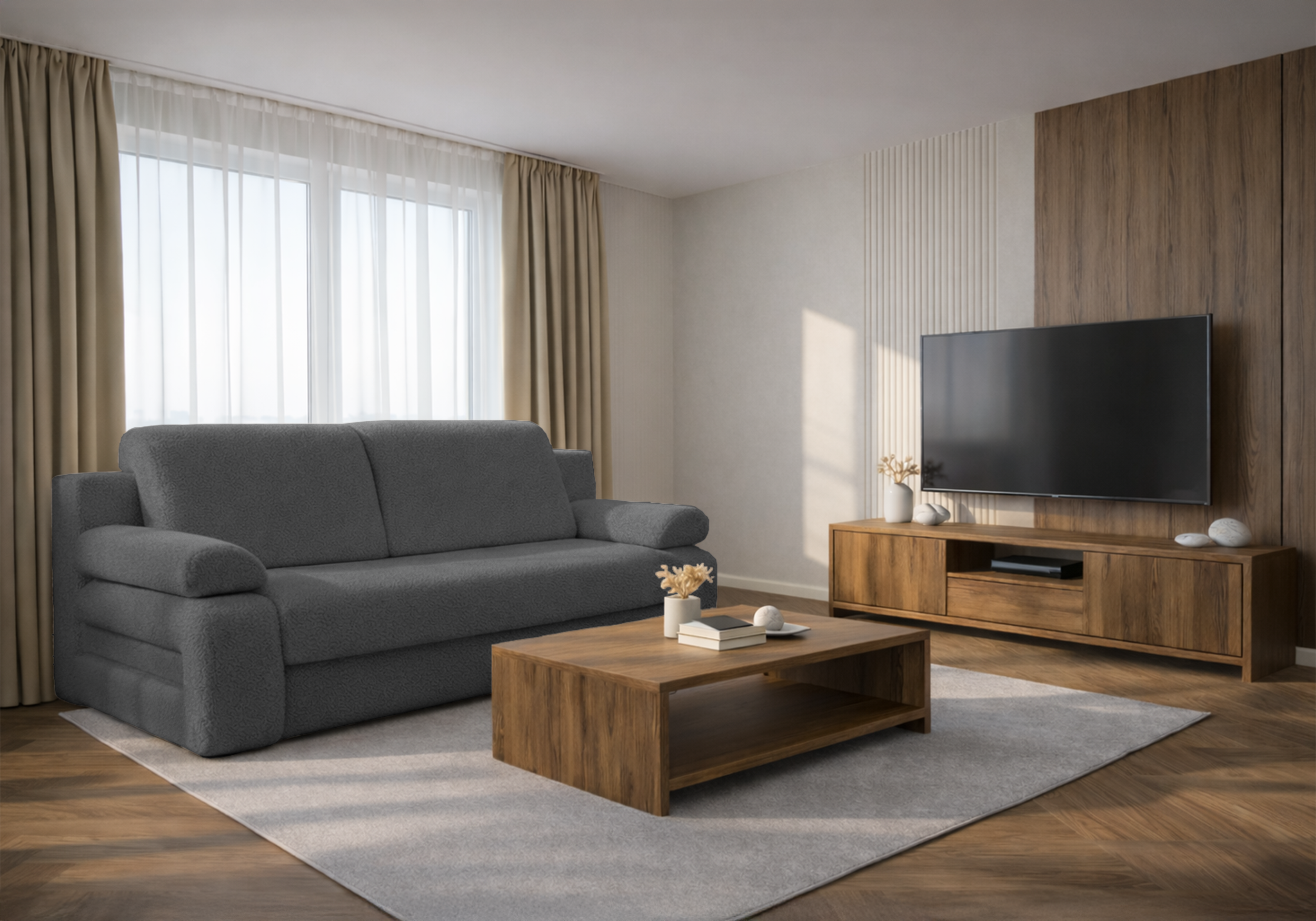 Trosjed Zara izvrsna je opcija za one koji traže praktično rješenje za manji stan, garsonijeru ili kuću za odmor. Kombinacijom udobnog sjedenja i ležaja u jednom nudi optimalno iskorištavanje prostora. Zahvaljujući modernom izgledu i raznobojnoj ponudi, lako se uklapa s različitim komadima namještaja, kako u modernim, tako i u klasičnim interijerima.
