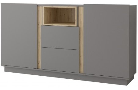Komoda Grey - 04 jednostavnog dizajna sadrži dvije ladice i dva prostora s vratima, odlično se nadgrađuje s drugim namještajem iz serije Grey. Prednost kolekcije leži u modernom dizajnu koji se odlično uklapa u svaki interijer.