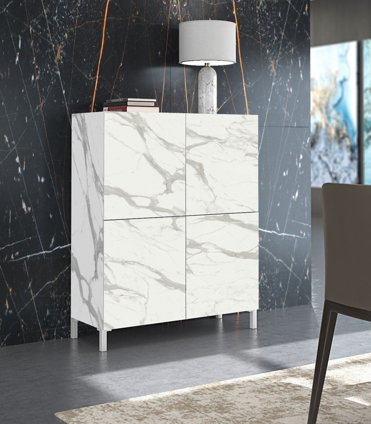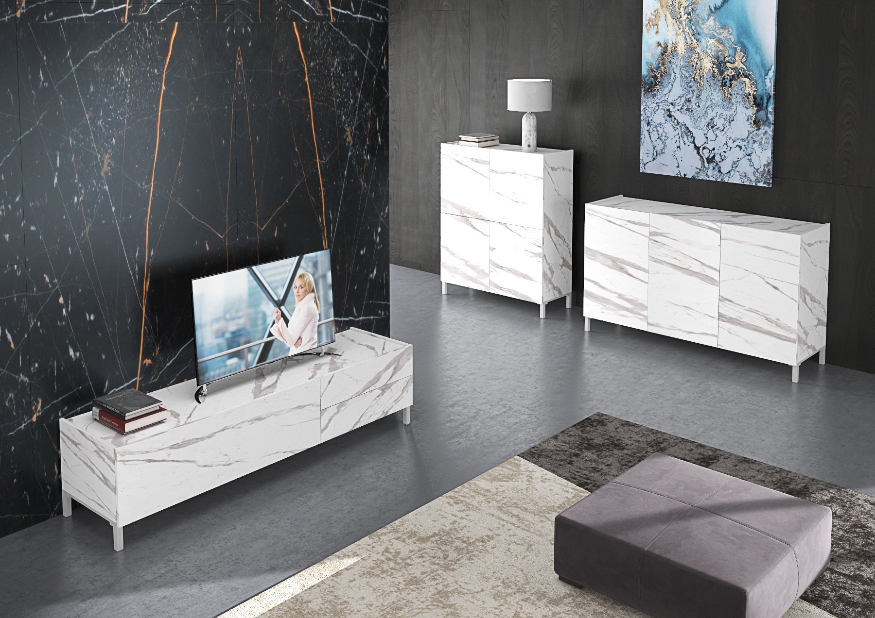 • Moderna komoda atraktivnog izgleda u imitaciji mramora.