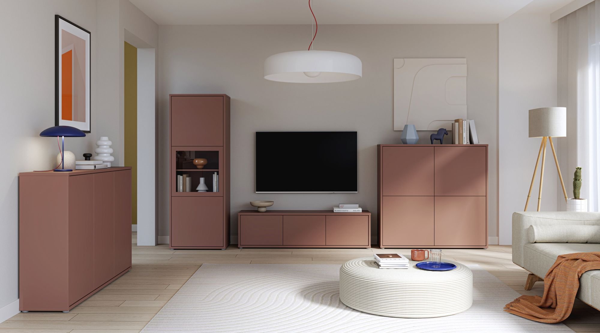 Terakota ton nije samo trendovski izbor, već i boja koja u prostor unosi prirodnu energiju. Ova nijansa podsjeća na toplu zemlju i sunčane krajolike, pa u kombinaciji s neutralnim zidovima ili drvenim podnim oblogama stvara uravnotežen i smiren ambijent. Komoda Alice Springs 232 u terakoti može biti središnji naglasak prostora ili se lako uklopiti s drugim toplim tonovima boja.
