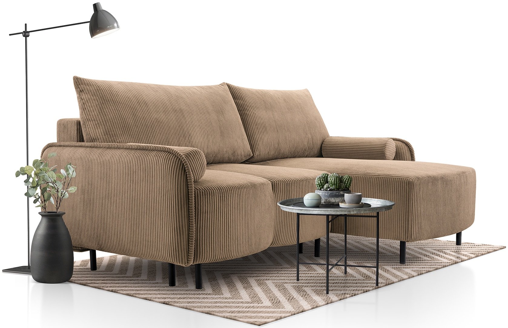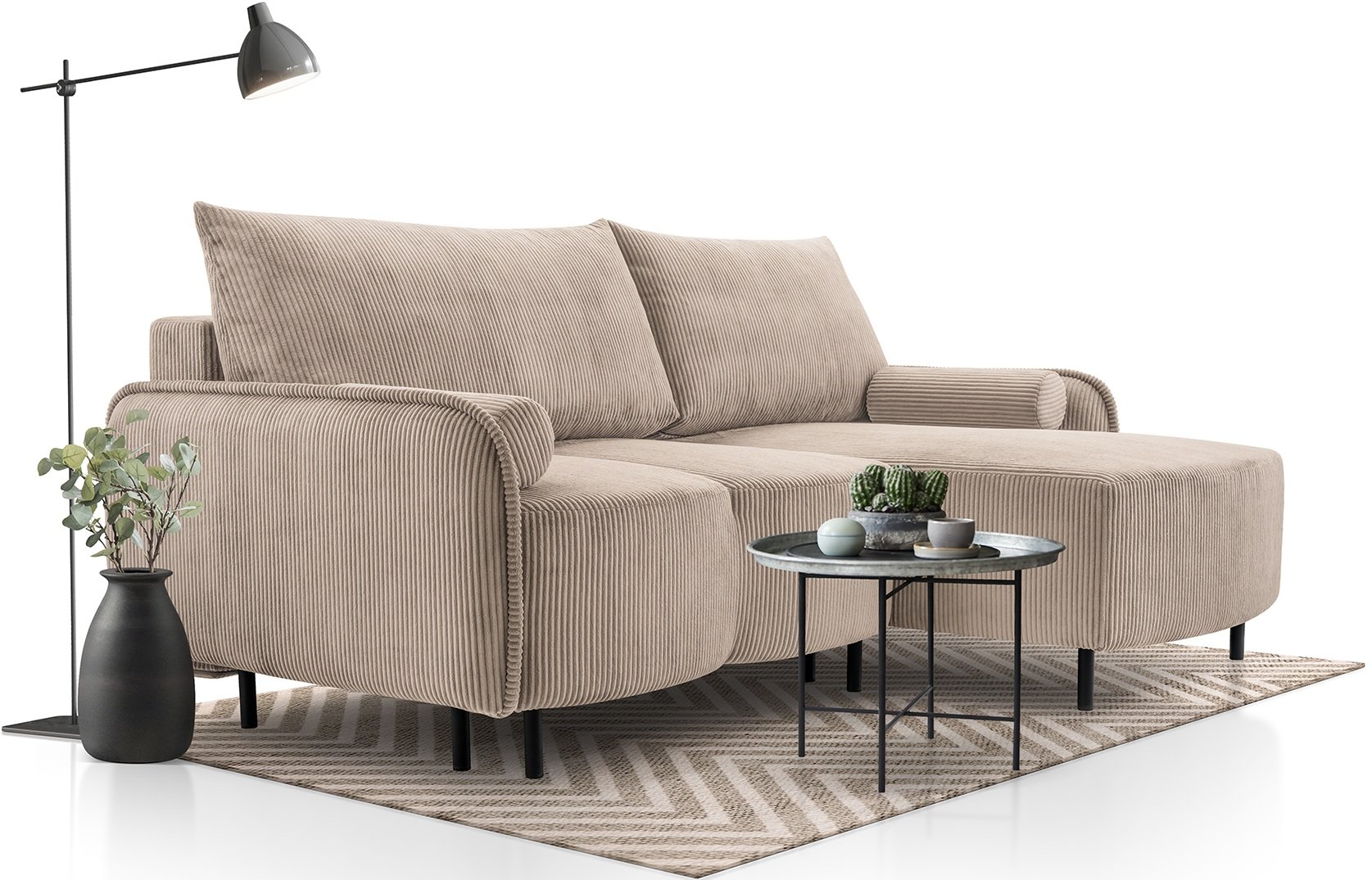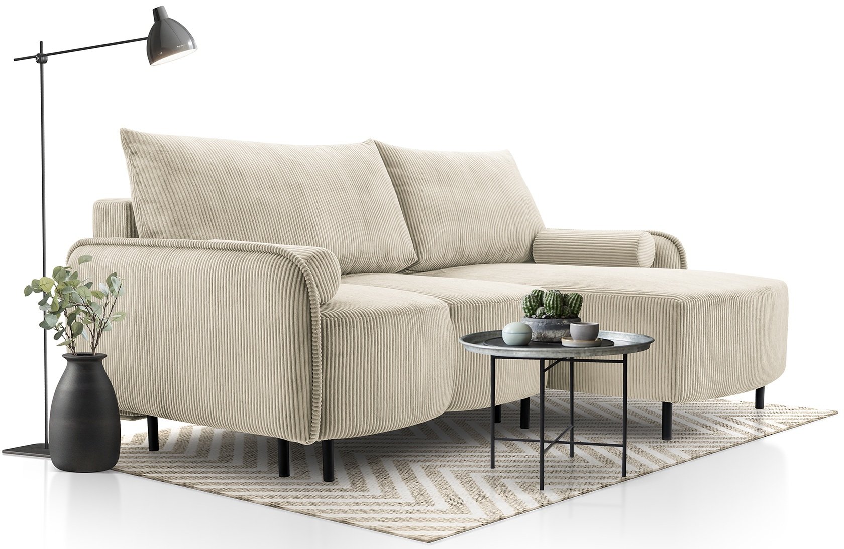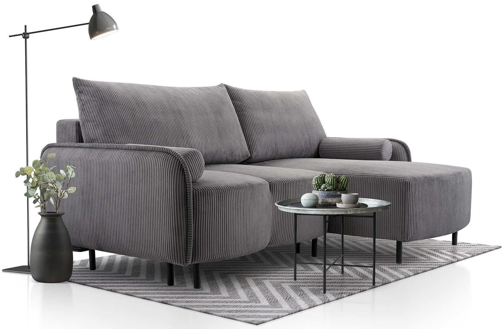 Kutna garnitura Tini predstavlja savršen balans između funkcionalnosti i estetike. Izrađena je u priznatoj poljskoj tvornici Kinas meble, gdje se spajaju suvremeni dizajn, kvalitetni materijali i precizna obrada. Garnitura sa svojim dimenzijama 215x150x90 cm nudi udobno sjedenje i praktično rješenje za manje ili srednje velike dnevne sobe. Radi se o komadu namještaja koji spaja eleganciju, udobnost i pametan dizajn uz pomoć provjerenog mehanizma Euro.