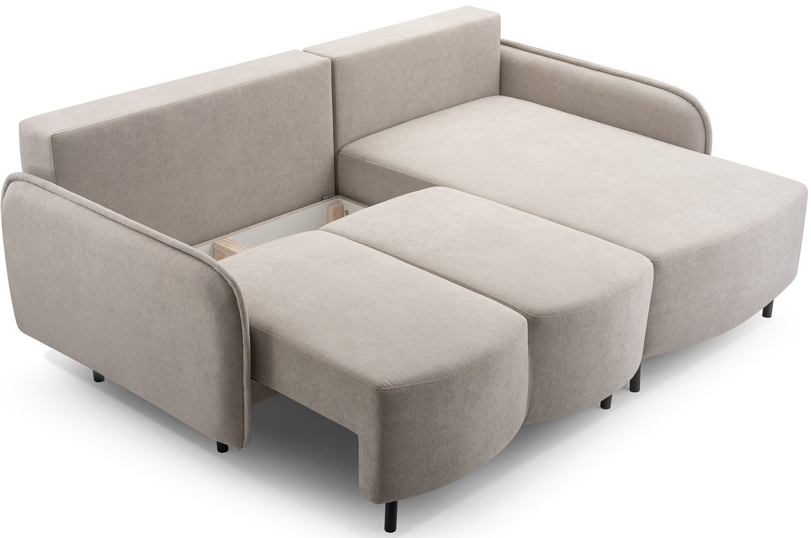 Okvir garniture izrađen je od drveta u kombinaciji s ivericom i vlaknastim pločama, što osigurava čvrstoću i dugotrajnu stabilnost konstrukcije. Sjedeći dio i naslon opremljeni su opružnom jezgrom Wave Spring, koja u kombinaciji s mekom poliuretanskom pjenom pruža optimalnu potporu i udobnost pri sjedenju i ležanju. Takav dizajn osigurava ravnomjernu raspodjelu težine i dug vijek trajanja tapeciranog dijela.