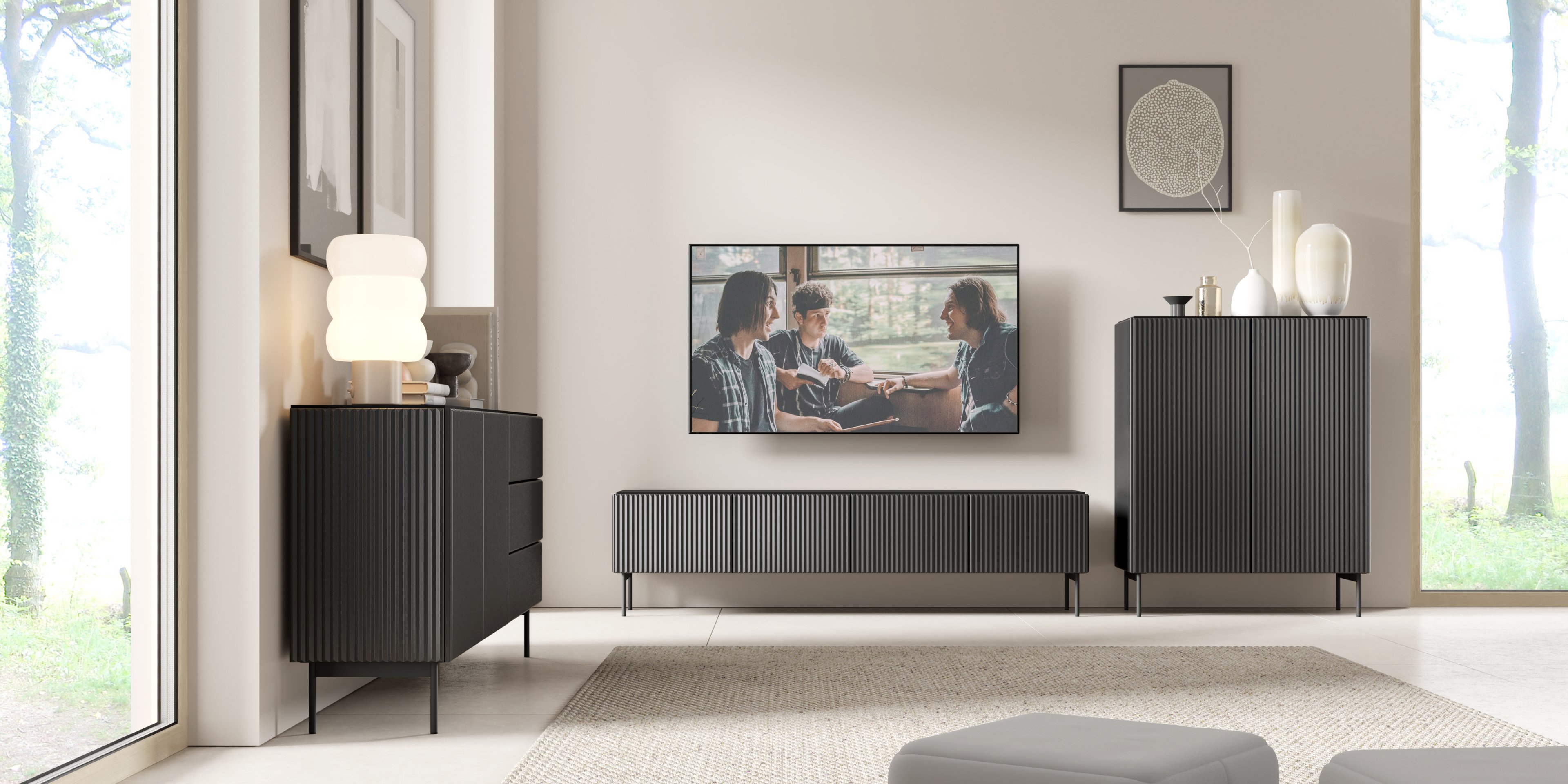 Kombinacija duboke crne boje i suptilnih utora na prednjim frontama stvara iznimno profinjen izgled koji pristaje i modernim i klasičnim prostorima. Zahvaljujući ABS obrubu u boji ploče rubovi su dodatno zaštićeni od udaraca i trošenja, što održava besprijekoran izgled dugi niz godina. Crna boja izvrsno se slaže s različitim materijalima i kolorističkim kombinacijama, pa komoda omogućuje jednostavno usklađivanje s postojećim namještajem i dekoracijama.