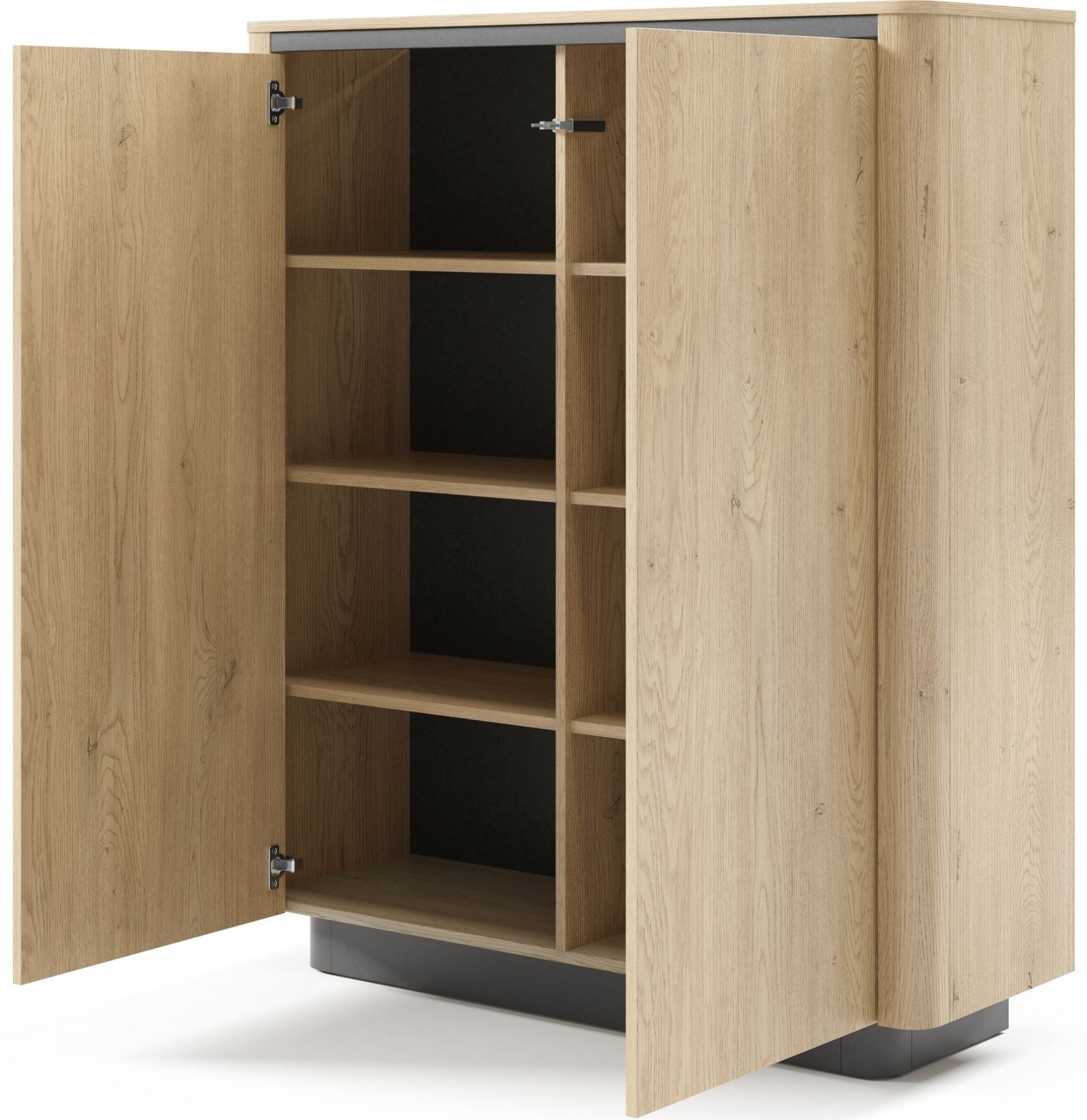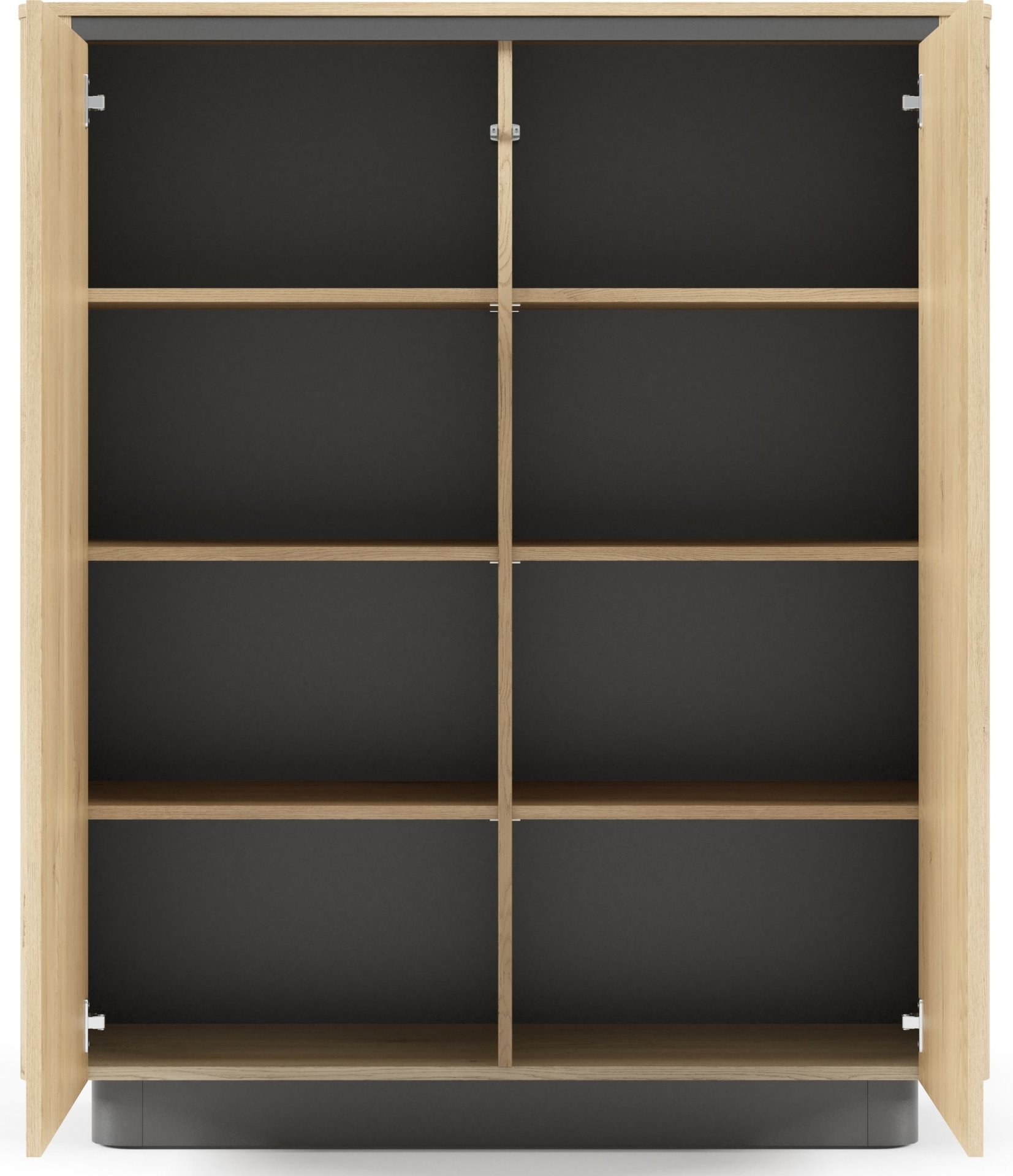 Otkrijte savršenu ravnotežu između suvremene estetike, funkcionalnosti i kvalitete – visoki element koji će u vaš dom donijeti profinjen dodir prirodnog drva te istovremeno ponuditi iznimnu prostranost za pohranu. Svojim elegantnim izgledom u boji hrasta Cremona i suptilnim crnim naglascima lako se uklapa u različite unutarnje stilove – od moderne minimalističke opreme do toplog skandinavskog ambijenta.