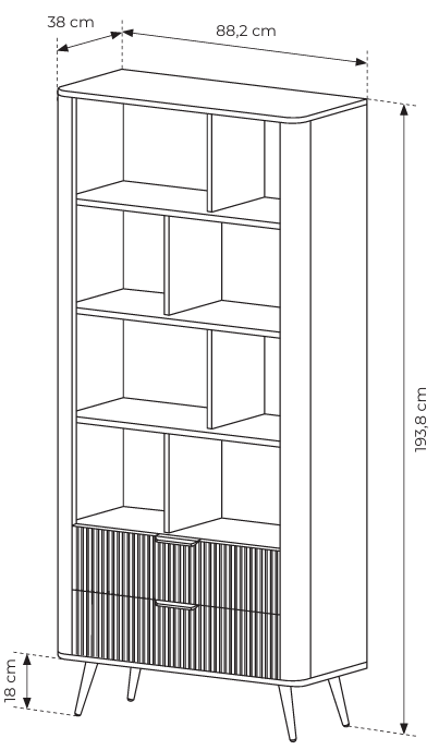 Dimenzije 88,2 x 38 x 193,8 cm omogućuju da regal bez poteškoća smjestite u dnevni boravak, spavaću sobu, ured ili čak predsoblje. Više polica osigurava preglednu organizaciju, a metalne nogice pružaju dodatnu stabilnost i trajnost. Zahvaljujući sustavu tihog zatvaranja uživat ćete u bezbrižnoj upotrebi bez neugodnih zvukova, što je posebno važno u prostorima gdje želite stvoriti mirnu i ugodnu atmosferu.