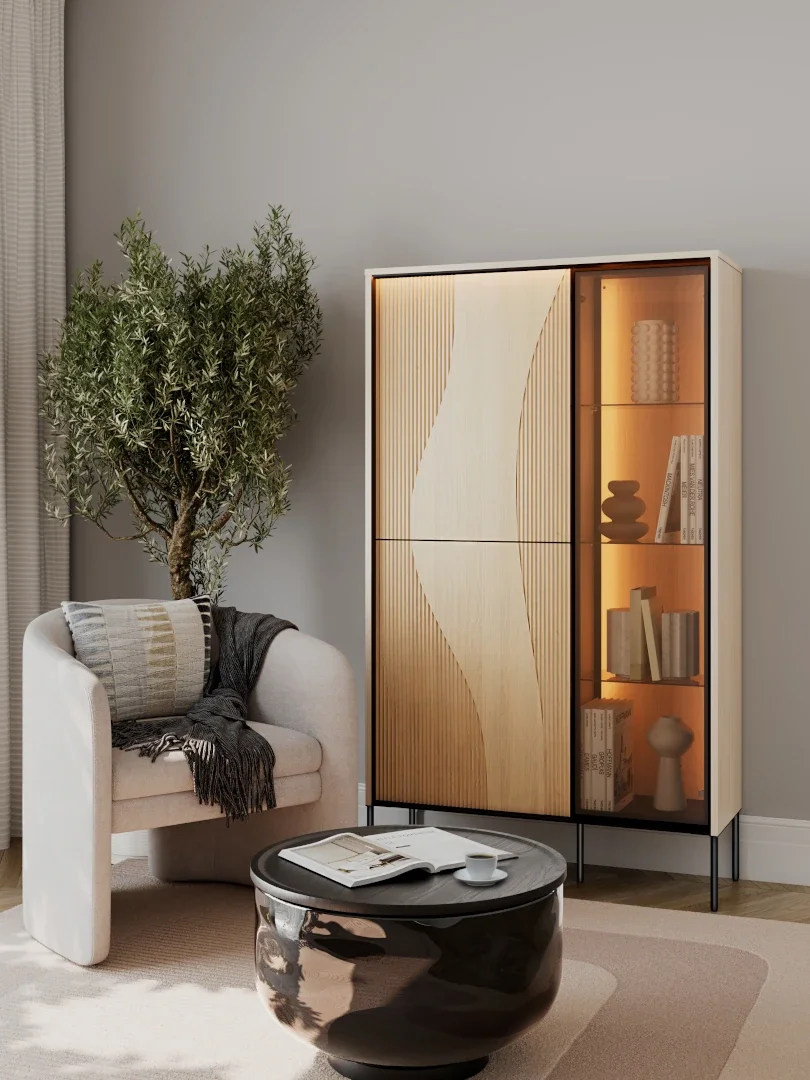 Osnova korpusa izrađena je od laminirane iverice debljine 16 mm, što osigurava stabilnost i otpornost na svakodnevnu upotrebu. Prednji dijelovi izrađeni su od MDF ploča debljine 18 mm, poznatih po svojoj glatkoj površini i ujednačenoj strukturi, što omogućuje estetski besprijekornu obradu. Površina je zaštićena laminatom koji je otporan na ogrebotine i jednostavan za čišćenje, što je idealno za obiteljske dnevne prostore gdje se namještaj koristi često i intenzivno.